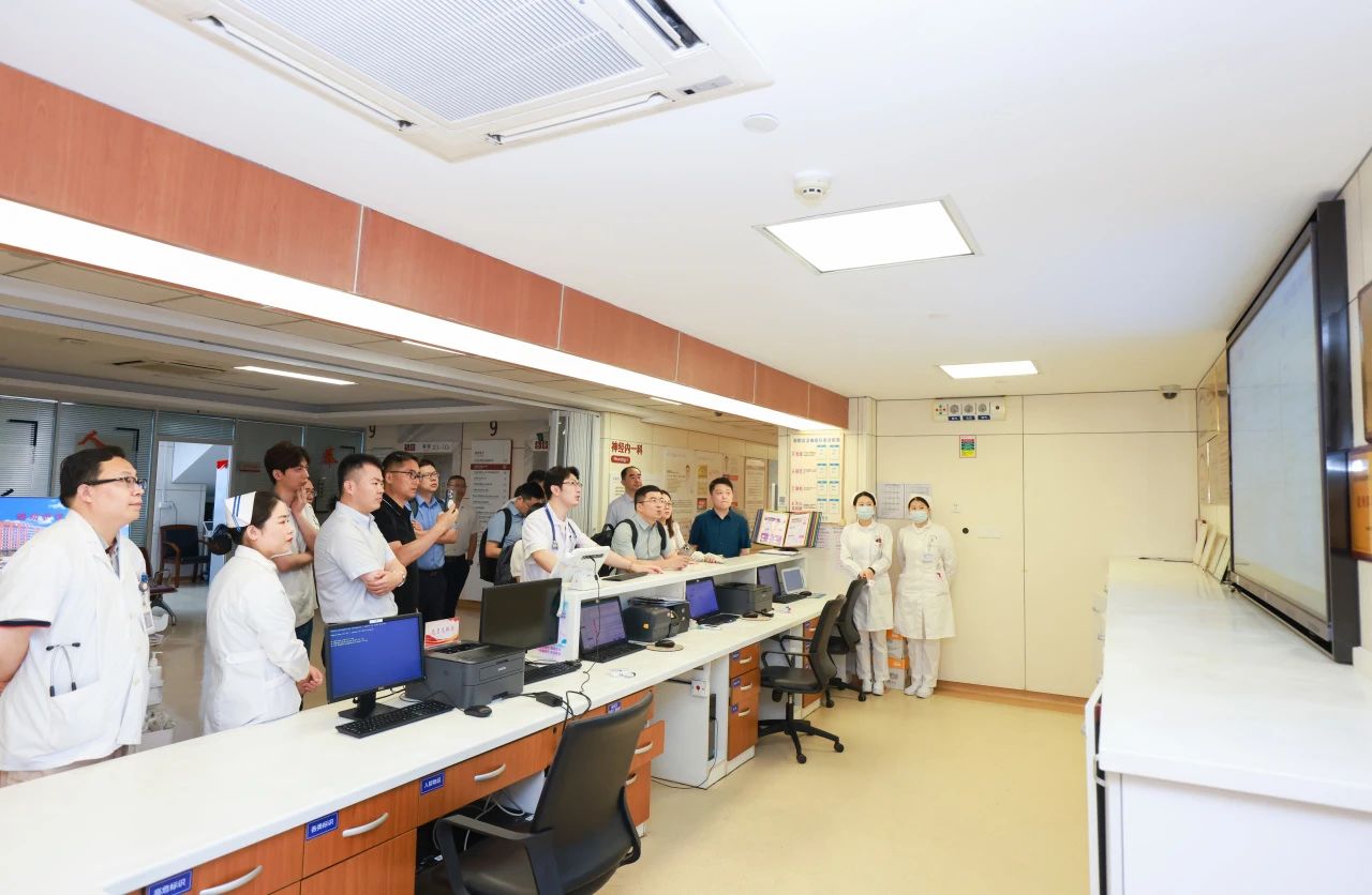 神經內科是醫院重點學科之一,也是醫院智慧病房建設示范病區,引起了大家的濃厚興趣。在九病區(神經內一科)參觀時,任海燕總護士長、郝云華副主任和耿延光醫生向大家現場演示了智慧護理大屏、移動護理工作站、移動醫療工作站、遠程探視系統、藍生AI智能體等管理系統。