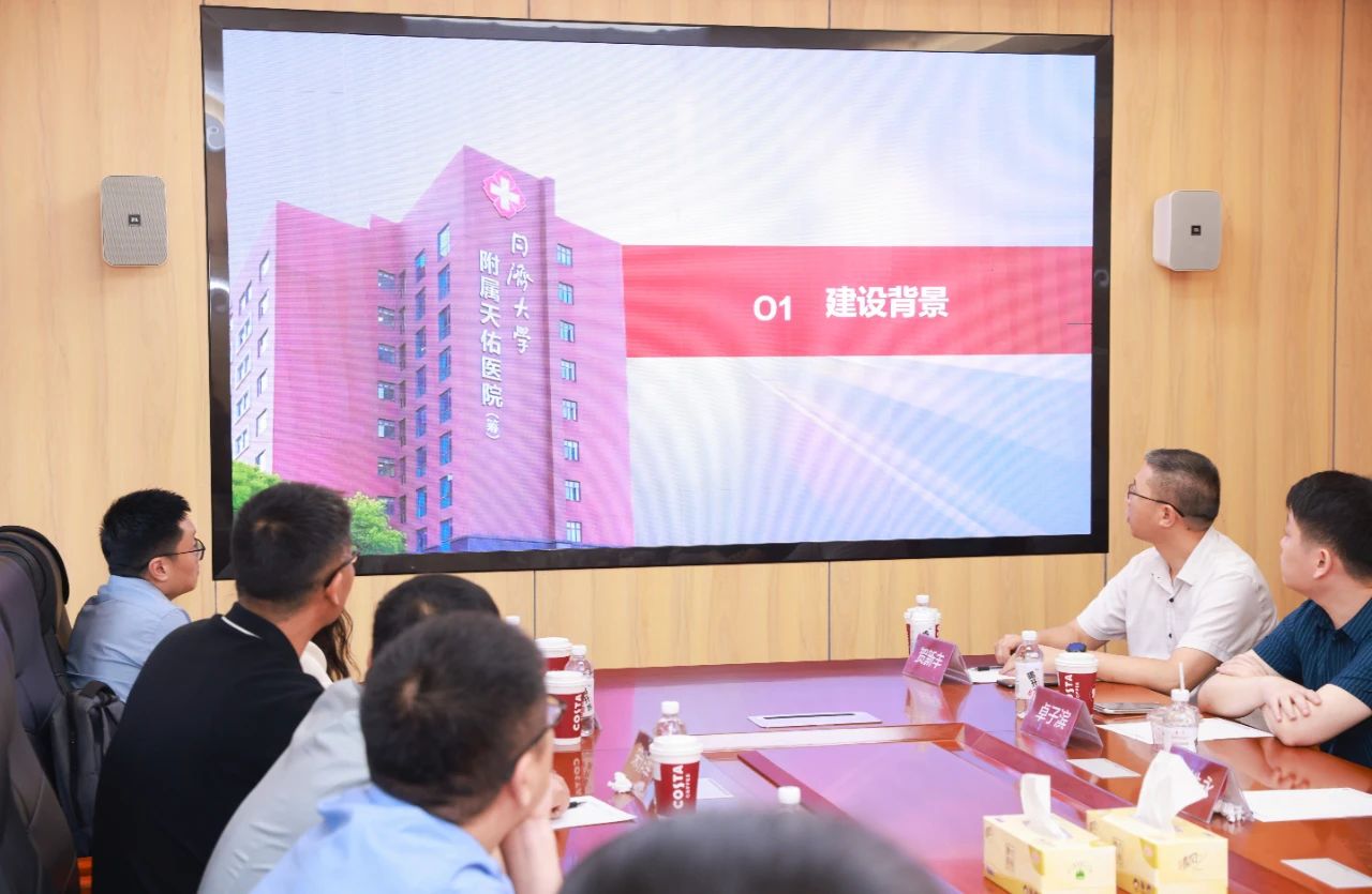 參觀結束后,在行政樓舉行了座談會。蔡劍飛院長首先介紹了天佑醫院的發展建設情況,展示了醫院在學科建設、創新發展、優質服務和智慧醫院建設等方面取得的成績。他表示,智慧醫院建設是推進醫院高質量發展的基礎工程,一切以優化服務流程、完善管理流程、提高運行效率為解決問題的立足點,積極推進智慧醫院建設,讓患者、醫護和管理者共同受益。