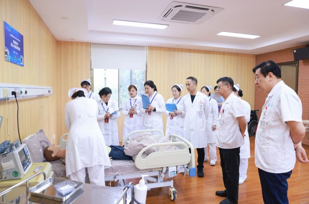 公司醫(yī)療管理部護(hù)理質(zhì)量監(jiān)督主任朱建英、醫(yī)療管理部總監(jiān)唐秀花、護(hù)理總監(jiān)周詠梅,天佑醫(yī)院副院長、護(hù)理部主任劉瑋琳擔(dān)任評委。天佑醫(yī)院院長蔡劍飛、執(zhí)行院長王強(qiáng)、副院長姜平等院領(lǐng)導(dǎo)現(xiàn)場觀摩。
