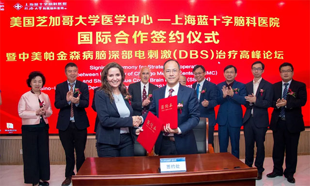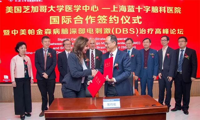 10月29日,芝加哥大學醫學中心 ( The University of Chicago Medicine,簡稱:芝大醫學中心 UCM ) —上海藍十字腦科醫院國際合作簽約儀式暨中美帕金森病腦深部電刺激(DBS)治療高峰論壇在上海藍十字腦科醫院成功舉行。全天議程共有三項,具體為:雙方洽談及病例討論、國際合作簽約儀式,中美醫學專家關于帕金森病腦深部電刺激 (DBS) 治療高峰論壇。