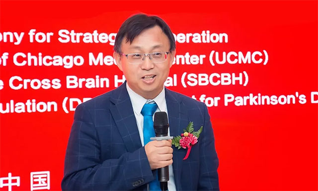 卓立強董事長介紹了集團發展目標:到2025年,將在中國打造一家擁有8000張床位的腦科醫療連鎖集團。卓董事長表示,為能與芝大醫學中心合作深感榮幸。今年,上海藍十字腦科醫院正在全力推進學科建設、員工滿意度建設、優質服務建設,信息化建設以及加快國際化合作步伐。卓董事長希望在芝大醫學中心的支持下,上海藍十字腦科醫院在癲癇病、帕金森病、腦血管病等腦科疾病領域緊跟世界先進水平,為降低腦病的發病率、致殘率及致死率作出貢獻。