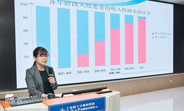 首先,永田彩老師就口腔護理理論及實際操作進行了講解。永田彩老師介紹到,隨著中國老年人口的不斷增長,老齡化趨勢越來越嚴重,到2050年中國老年人占比將達到27.6%,將與現在的日本老齡化相差無幾。在中國城市居民的六大死因中,呼吸系統疾病排第四位,而65歲以上的老人因肺炎的死亡率占比高達36%以上;80以上高齡者肺炎成為死亡的第一大原因,并以吸入性肺炎為主,因此老齡患者“吸入性肺炎”預防已成為護理工作的重中之重。