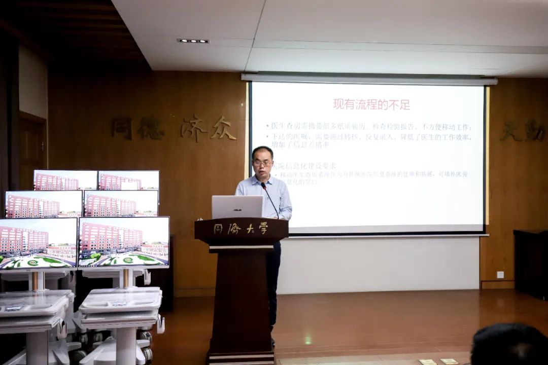 蔡劍飛院長在啟動儀式上表示,“移動醫療工作站”正式上線是天佑醫院“智慧醫院”建設的一個標志,“智慧查房”將給醫生帶來極大的便利,進一步提升醫生查房效率和質量。蔡院長要求大家通過專項培訓和實際操作,熟練掌握相關設備和軟件的應用,同時,要有保護意識,醫院要制定相關管理辦法,各病區要有專人管理。蔡院長還就“智慧醫院”建設整體規劃作了介紹。