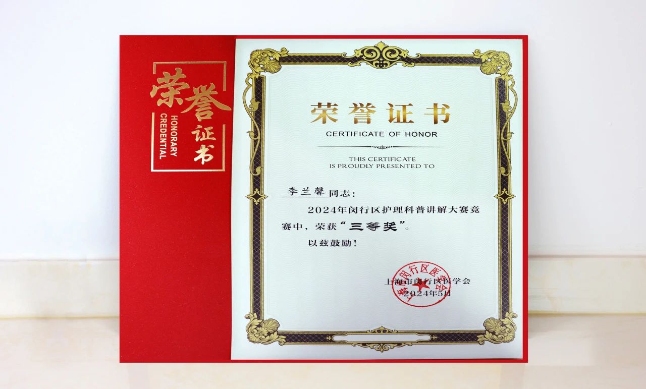 《動起來,不要被“栓”住》凝聚了醫(yī)院護(hù)理團(tuán)隊(duì)的智慧和努力,以預(yù)防“血栓”疾病為主題,以“深靜脈血栓(DVT)”真實(shí)事例為切入點(diǎn),通過視頻和現(xiàn)場講解相結(jié)合的方式,展示了血栓的病因、危害、形成和預(yù)防常識,多角度地將深奧的專業(yè)醫(yī)學(xué)知識進(jìn)行生動鮮活的演繹。憑借精妙的創(chuàng)意及李蘭馨護(hù)士長現(xiàn)場出色的演講,讓觀眾及評委產(chǎn)生了強(qiáng)烈的代入感和認(rèn)同感,在53個作品中脫穎而出,獲得“2024 年閔行區(qū)護(hù)理科普講解大賽”三等獎的佳績。
