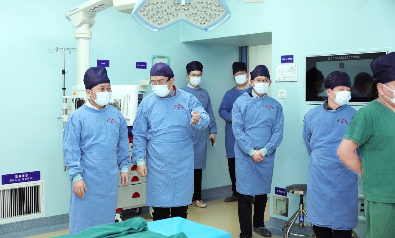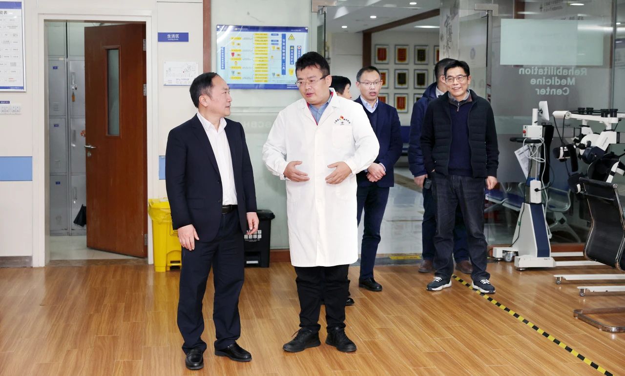 儀式結束后,張曉華教授一行在朱敏書記的帶領下,深入醫院手術室、9F重癥醫學科、康復醫學科、影像醫學科、高壓氧科、放療科等特色科室實地參觀,進一步加深對醫院的了解,并就醫院學科建設、人才培養、科研創新、醫療服務、醫院管理等方面內容進行了互動交流。