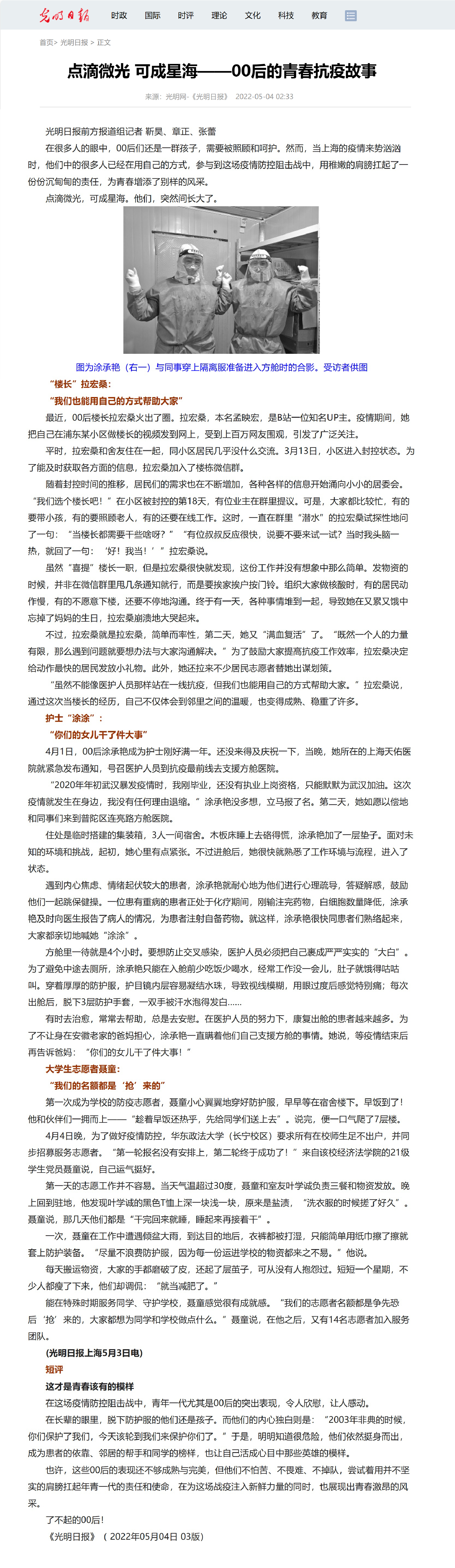 在很多人的眼中,00后們還是一群孩子,需要被照顧和呵護。然而,當上海的疫情來勢洶洶時,他們中的很多人已經在用自己的方式,參與到這場疫情防控阻擊戰中,用稚嫩的肩膀扛起了一份份沉甸甸的責任,為青春增添了別樣的風采。