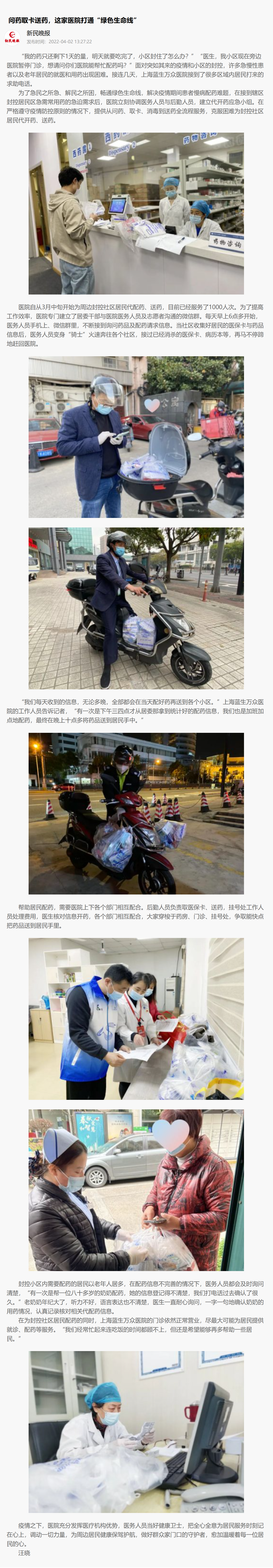 “我們每天收到的信息,無論多晚,全部都會在當天配好藥再送到各個小區(qū)。”上海藍生萬眾醫(yī)院的工作人員告訴記者,“有一次是下午三四點才從居委那拿到統(tǒng)計好的配藥信息,我們也是加班加點地配藥,最終在晚上十點多將藥品送到居民手中。”