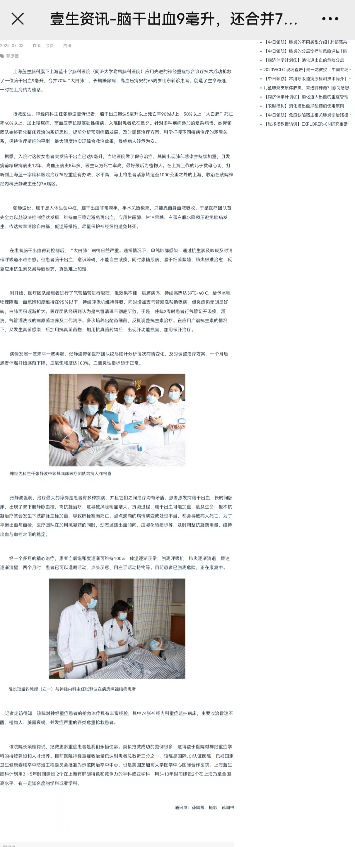 中國醫(yī)學(xué)論壇報(bào):腦干出血9毫升,還合并70%“大白肺”的極高危患者在上海獲救