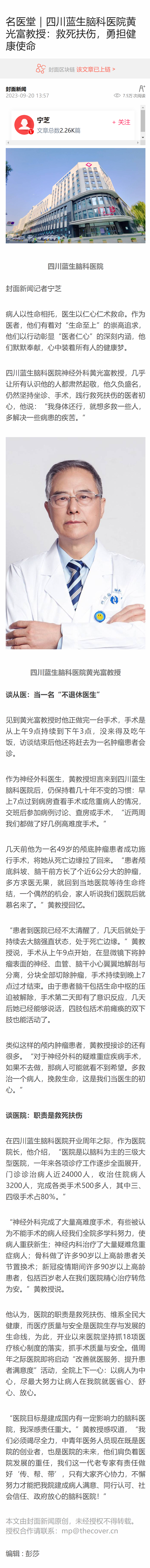 四川藍生腦科醫(yī)院神經(jīng)外科黃光富教授,幾乎讓所有認識他的人都肅然起敬,他久負盛名,仍然堅持坐診、手術(shù),踐行救死扶傷的醫(yī)者初心,他說:“我身體還行,就想多救一些人,多解決一些病患的疾苦。