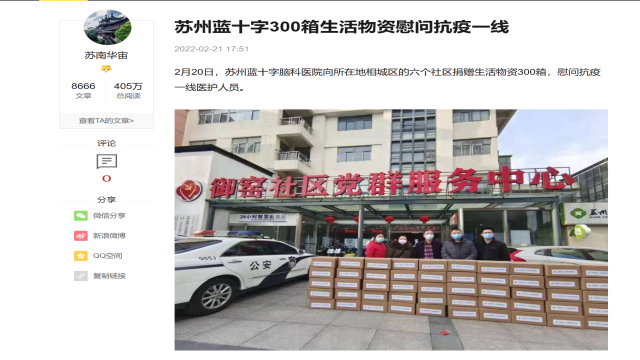中國蘇南視窗:蘇州藍十字300箱生活物資慰問抗疫一線