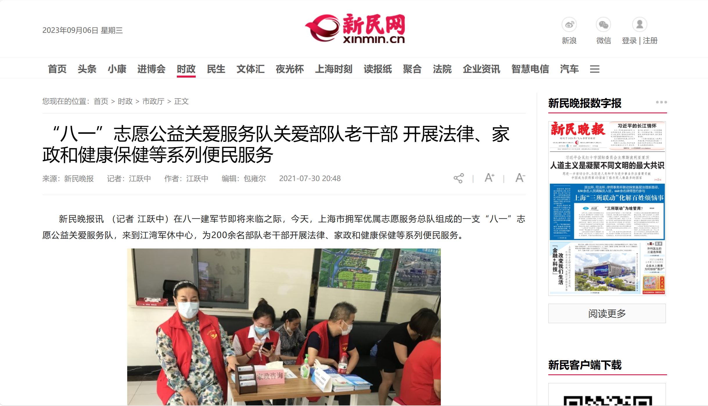 新民網:“八一”志愿公益關愛服務隊關愛部隊老干部 開展法律、家政和健康保健等系列便民服務