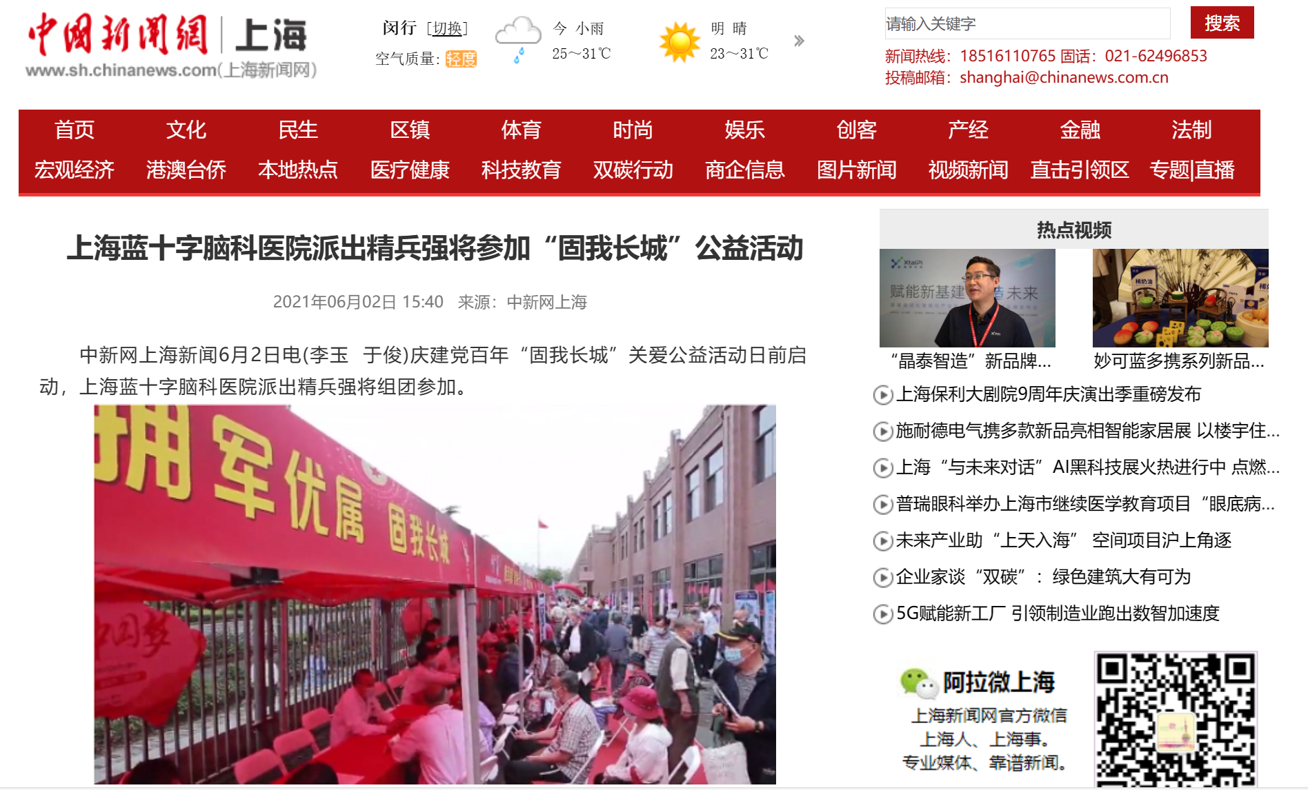 中新網上海:上海藍十字腦科醫院派出精兵強將參加“固我長城”公益活動