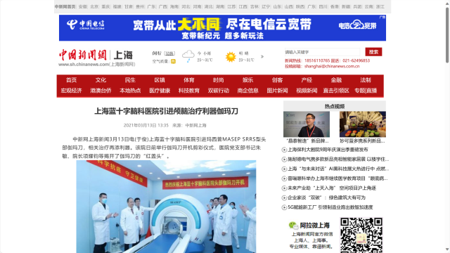 中新網上海:上海藍十字腦科醫院引進顱腦治療利器伽瑪刀