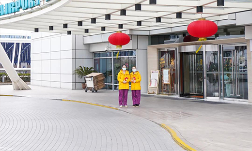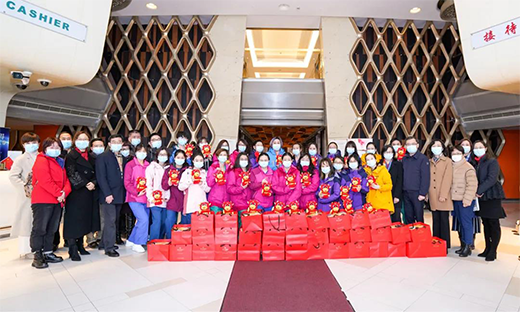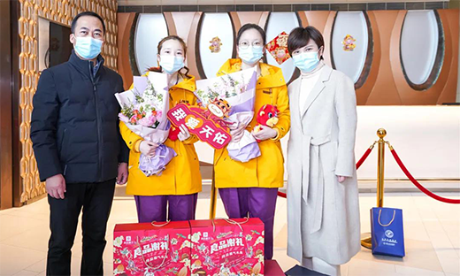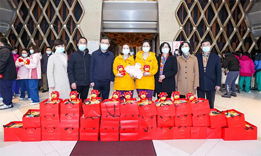 2月10日,農歷臘月二十九上午,普陀區衛生健康工作黨委書記馬理路、區衛健委主任鄧海巨、副書記陸靜靜、副主任奉典旭一行特地前往浦東機場,看望在那已值守大半月的醫務人員,為他們送去節日的問候。天佑醫院副院長姜平、護理部主任助理張穎一同前往,看望并慰問天佑醫院兩名“抗疫天使”。