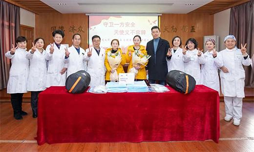 早在1月上旬,天佑醫院接到上海市衛健委通知,需要組織醫務人員到浦東機場協助上海海關開展新冠病毒檢測采樣工作,手術室王思晶、NICU聞義軍2名護士于1月18日正式走上了“前線”,與普陀區兄弟醫院姐妹們一道,將完成為期一個月的防疫任務。當時,蔡劍飛院長、卓立峰總經理等領導一起為他們送行。