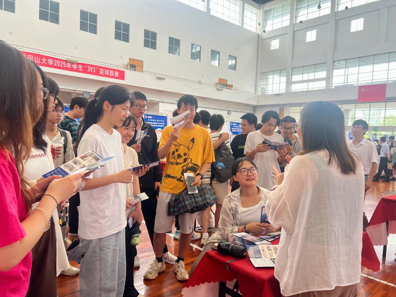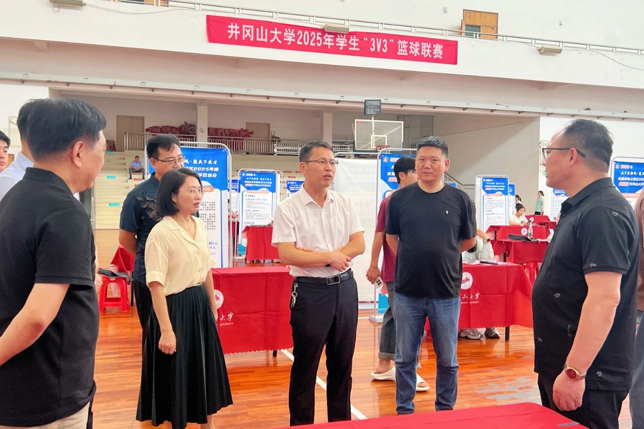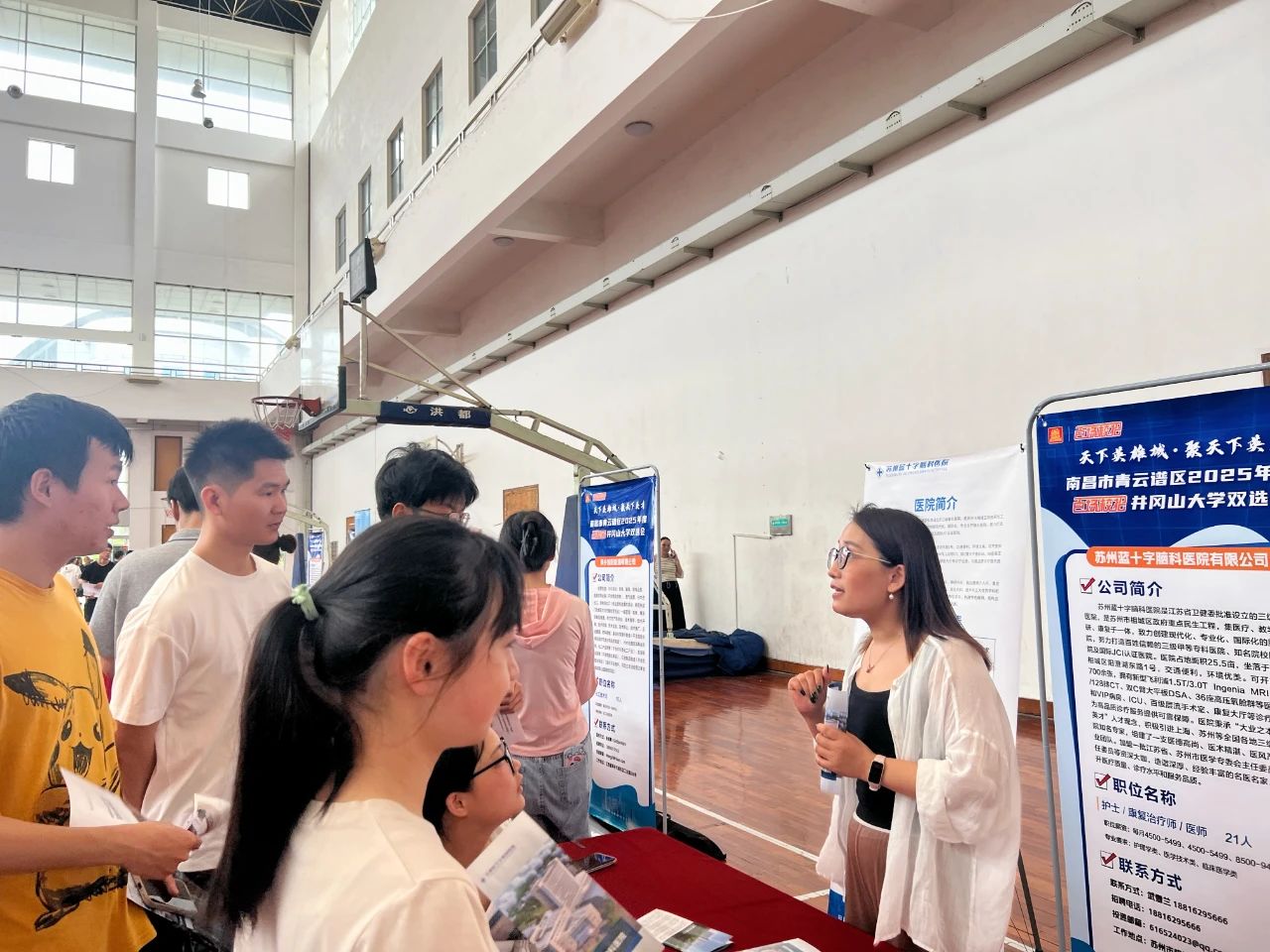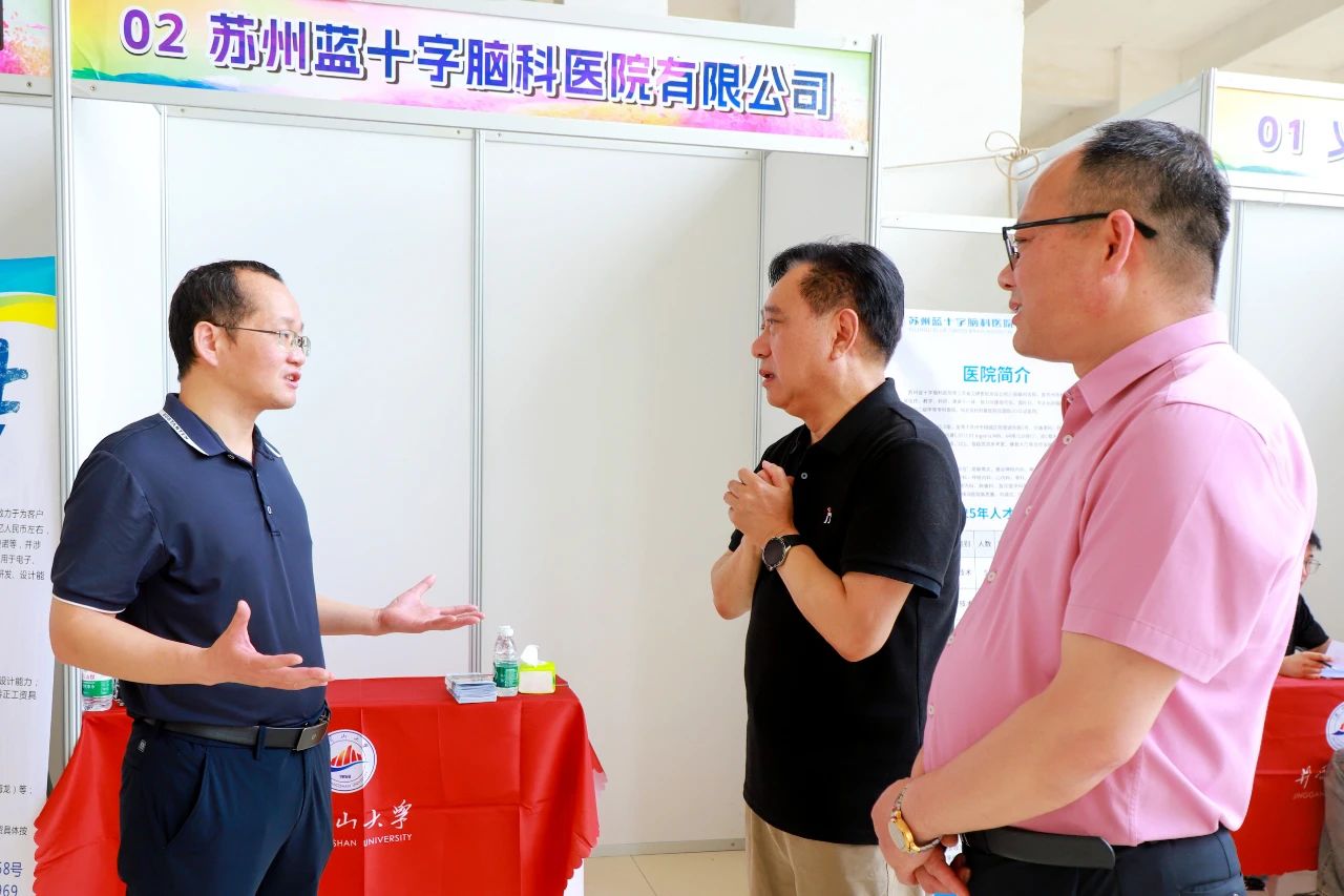 △ 井岡山大學(xué)黨委常委、副校長(zhǎng)冷明(中)與醫(yī)院代表在招聘會(huì)會(huì)面