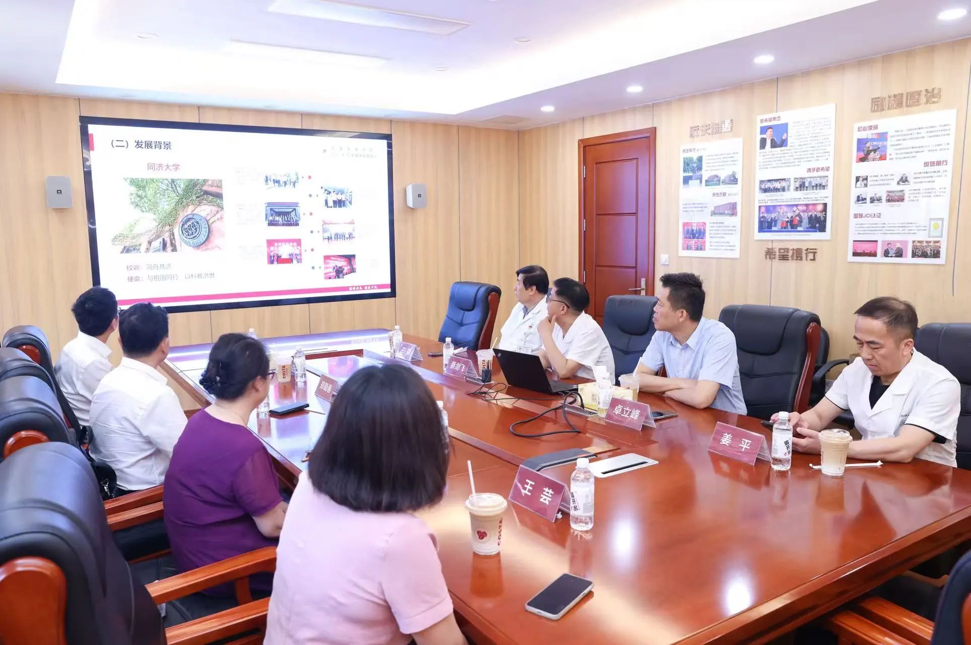 7月15日下午,福州大學醫(yī)學院黨委副書記陳偉斌、附屬省立醫(yī)院副院長鄭曉春一行在同濟大學滬西校區(qū)管委辦主任畢婉蓉、同濟大學醫(yī)學院院辦主任蔡文萍、同濟大學滬西校區(qū)管委辦副主任王蕓的陪同下,到上海天佑醫(yī)院參觀交流,天佑醫(yī)院院長蔡劍飛、總經(jīng)理卓立峰等院領導接待并座談。