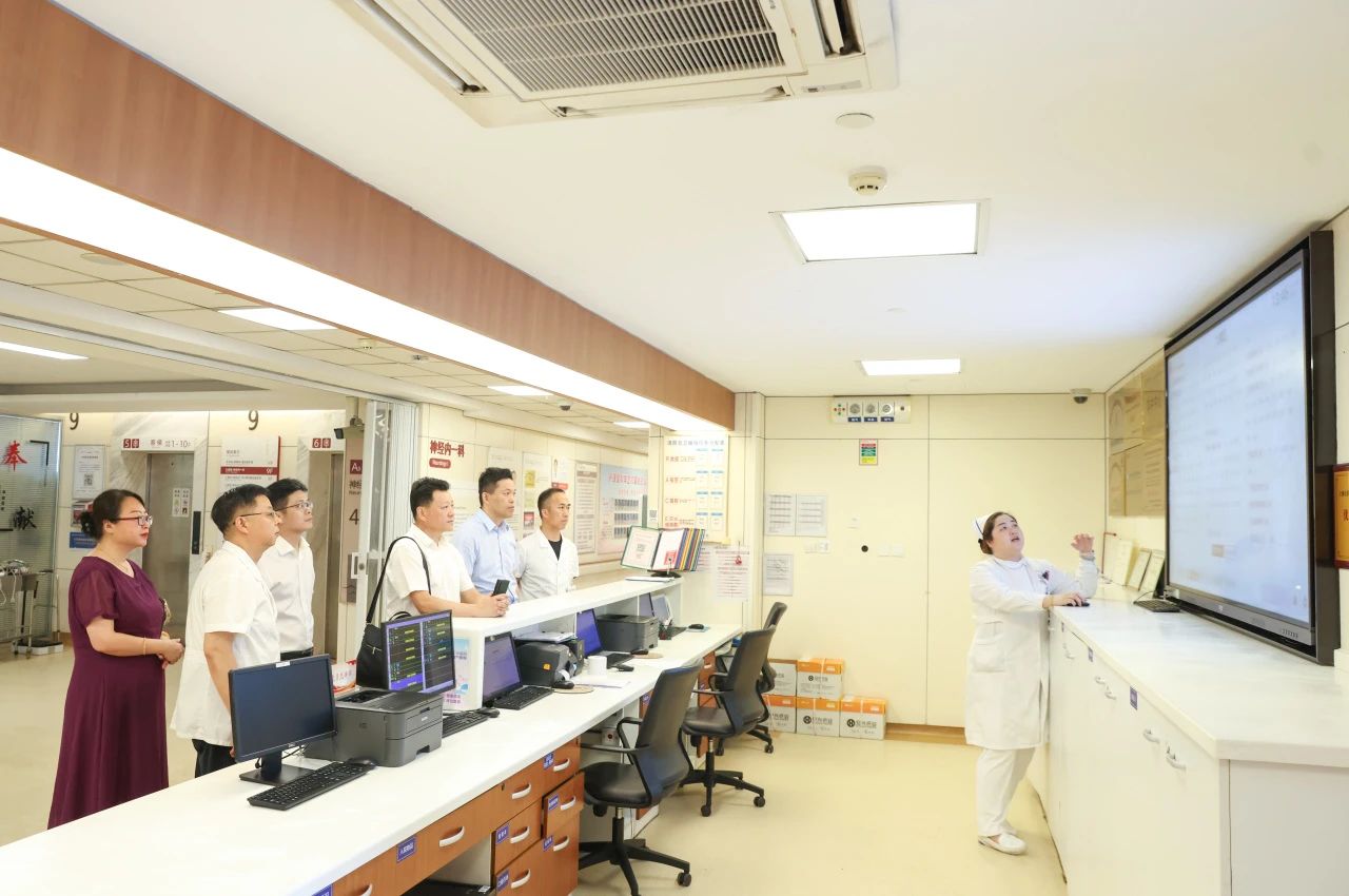 領導們一行先后到放療科、高壓氧艙、NICU、康復大廳及多個病區(qū)參觀考察。每到一處,蔡劍飛院長都進行詳細介紹,讓大家實地了解醫(yī)院的功能布局、設備設施、智慧醫(yī)院建設等情況。
