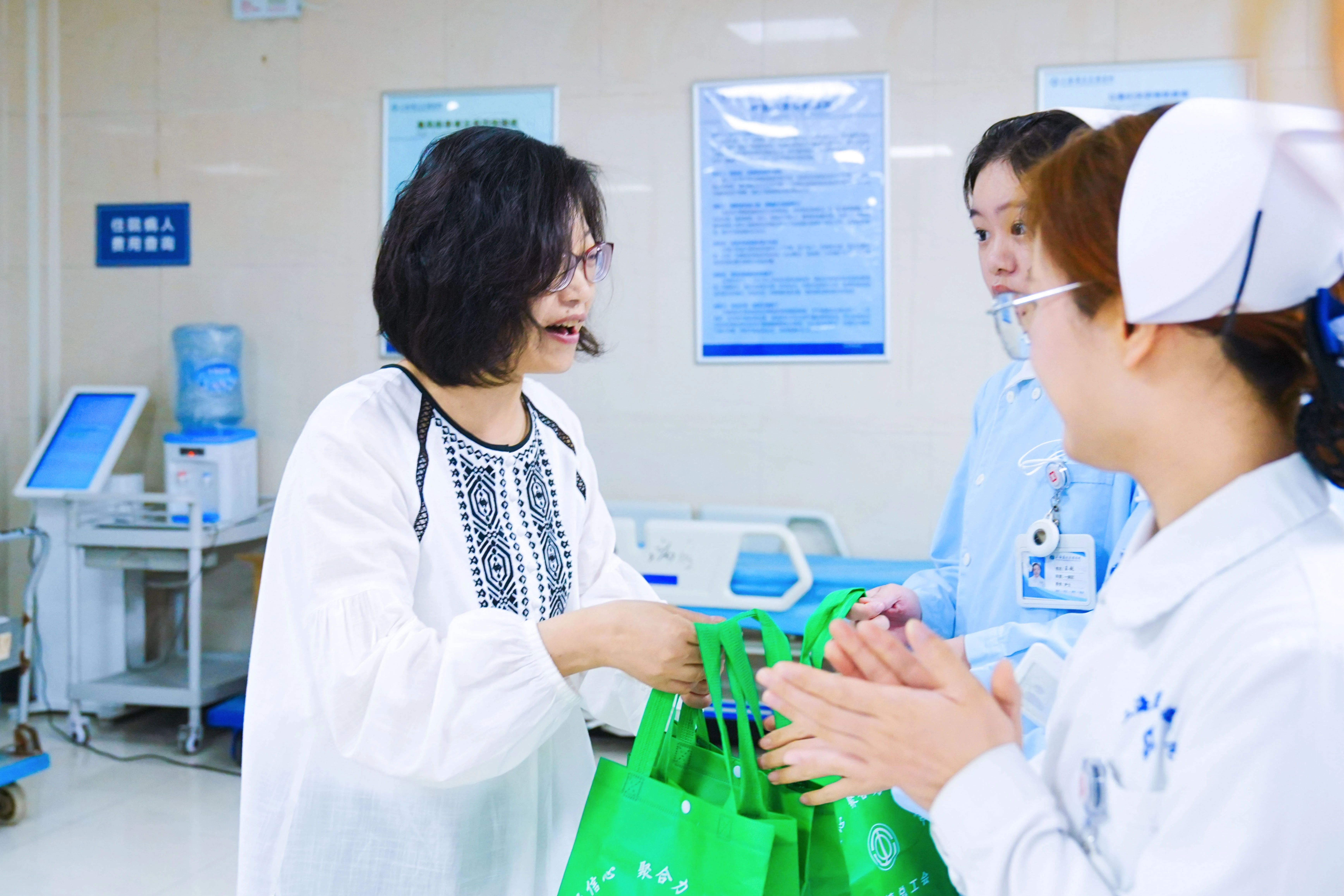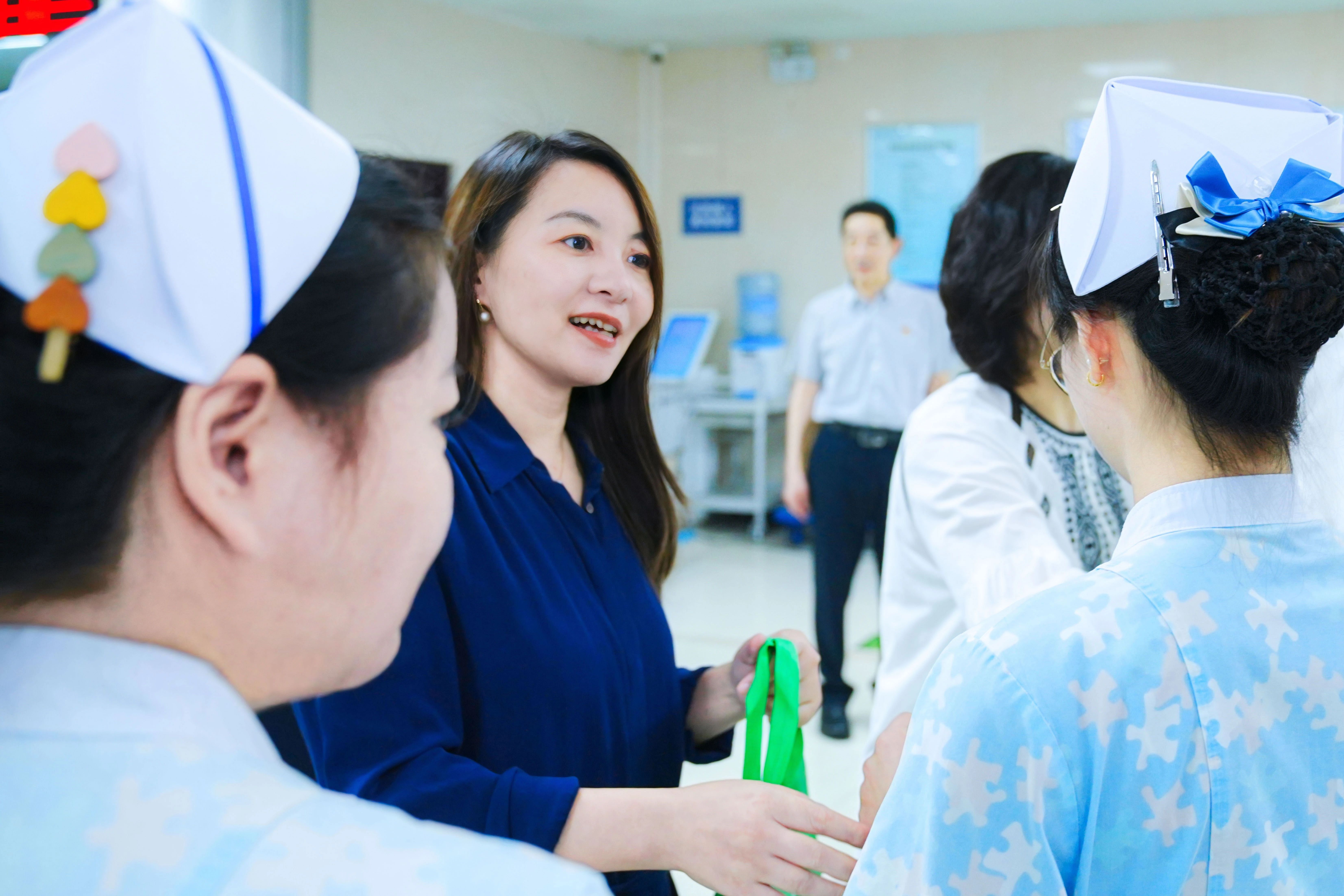 在醫(yī)院領(lǐng)導(dǎo)班子陪同下,吳音英書記和吳云燕委員來到醫(yī)院門診大樓,與醫(yī)護(hù)人員親切交談,詳細(xì)了解近期診療情況、防暑保障措施及職工工作狀態(tài)。同時(shí)為醫(yī)務(wù)人員送上清涼防暑禮包。領(lǐng)導(dǎo)們叮囑大家在做好醫(yī)療服務(wù)的同時(shí),注意勞逸結(jié)合,確保自身健康。