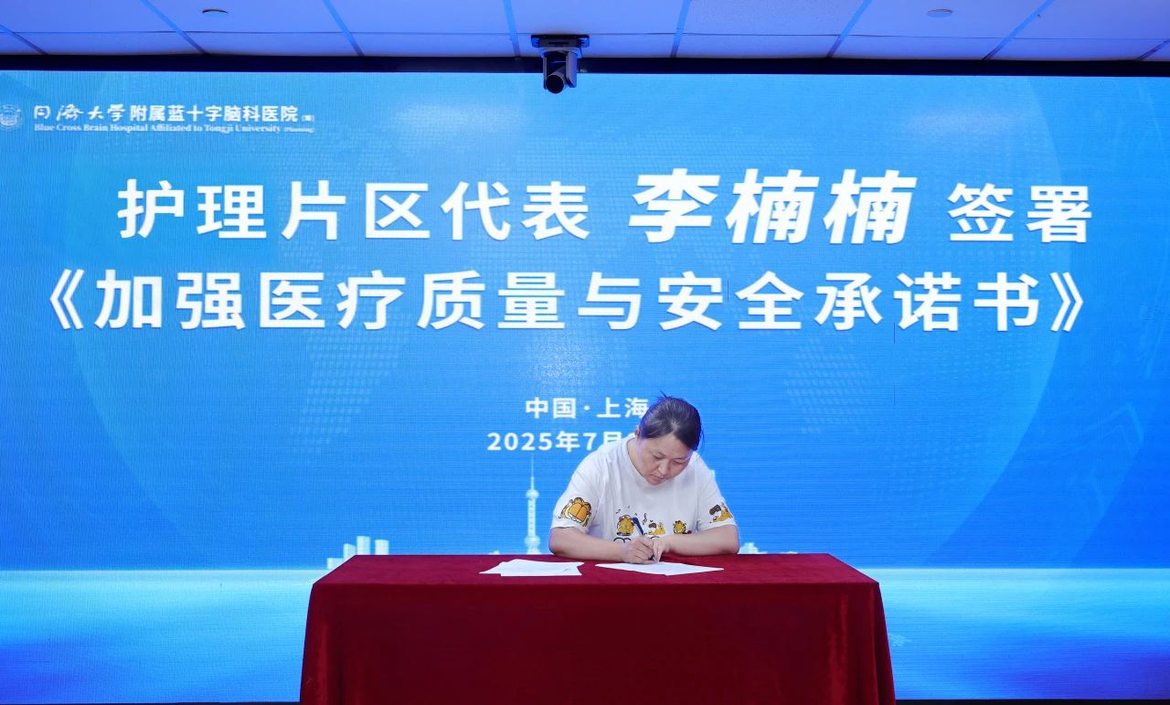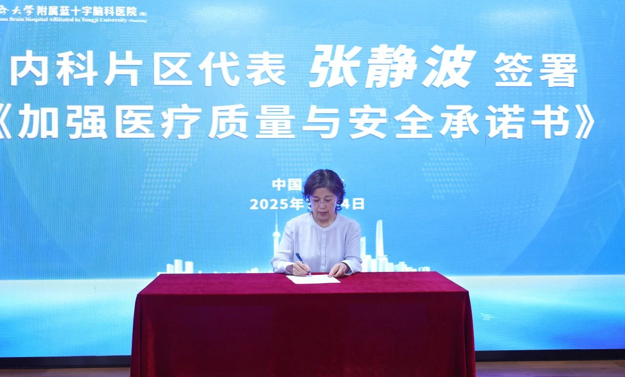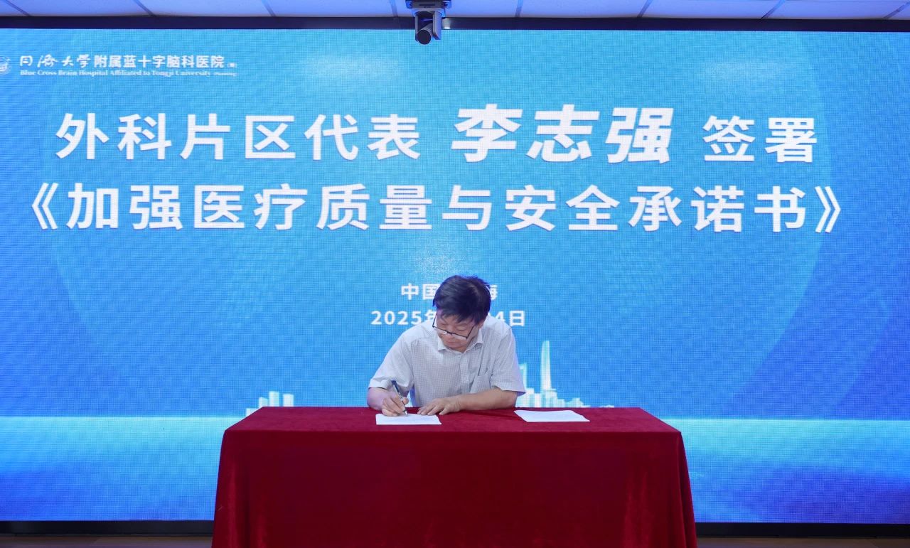 隨后,張靜波主任、李志強主任、孫海輝主任、李楠楠護士長分別代表內科片區、外科片區、醫技科室片區、護理片區,上臺簽署《加強醫療質量與安全承諾書》。