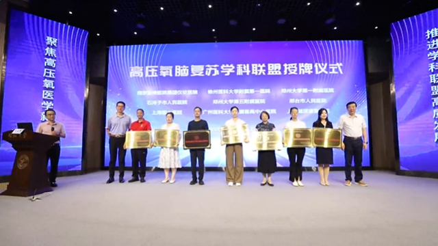 授牌儀式上,鄭州大學第一附屬醫院高壓氧治療中心護士長張潔代表新加盟單位發言。她在介紹科室的人員配備、學術發展、入盟初衷后表示,希望高壓氧腦復蘇學科聯盟能夠加大在科研方面的投入與合作力度,積極開展多中心、大規模的臨床研究,積極探索高壓氧治療在腦復蘇及其他相關疾病治療中的方案和治療機制,持續創新技術和方法,切實提高治療效果;加強對聯盟單位的幫扶與指導,提升聯盟單位醫護人員對高壓氧治療和腦復蘇技術水平;促進優質醫療資源下沉,讓更多患者能夠在當地享受到規范有效的高壓氧治療服務,真正惠及廣大人民群眾。