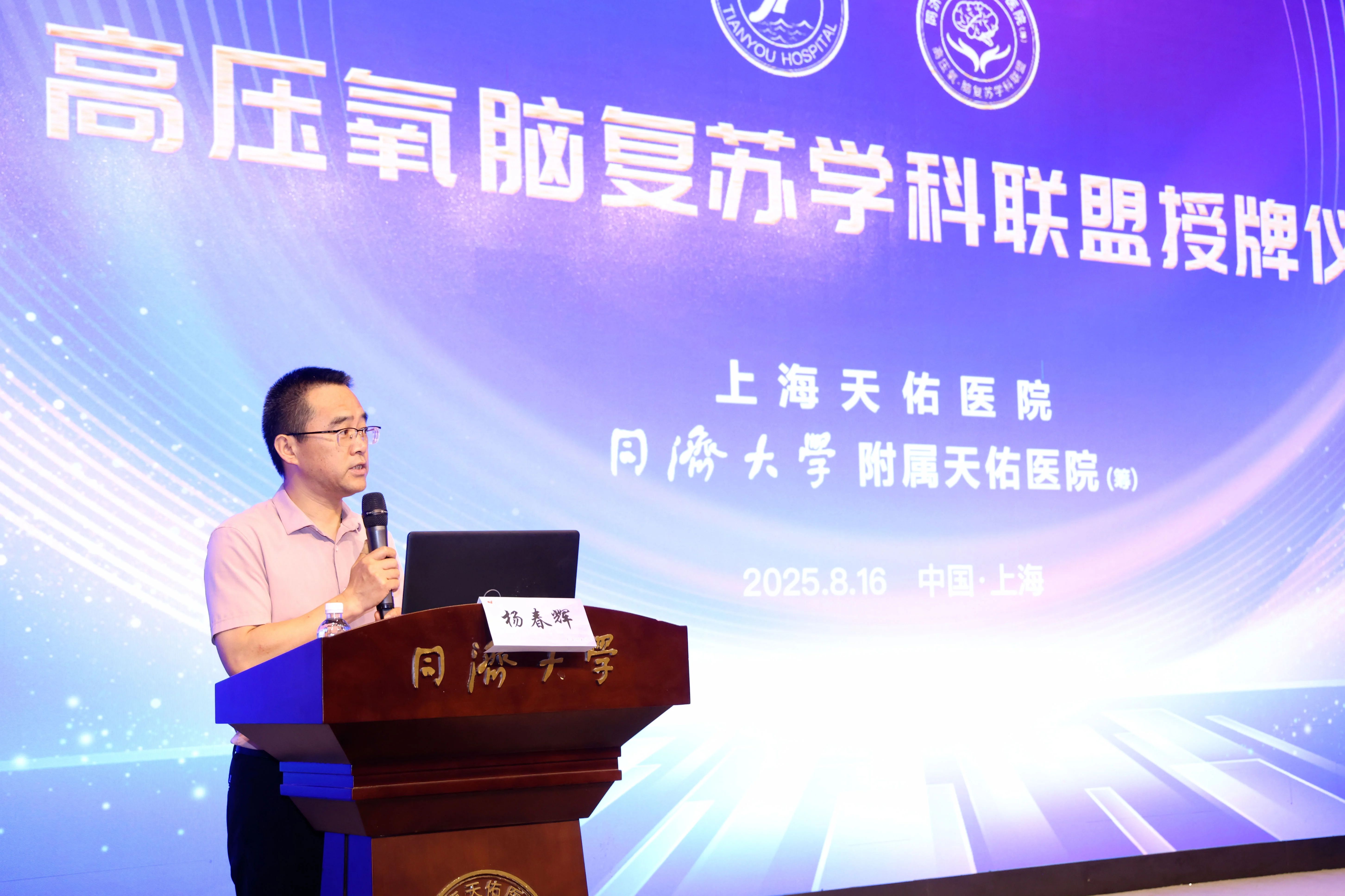 8月16日,2025上海市醫學會高壓氧醫學分會學術年會在上海天佑醫院召開。在開幕式前,舉行了同濟大學附屬天佑醫院(籌)高壓氧腦復蘇學科聯盟授牌儀式。上海市醫學會高壓氧醫學專科分會副主任委員楊春輝主持授牌儀式,名譽主任委員劉青樂教授、上海天佑醫院執行院長王強教授為新加盟單位授牌。