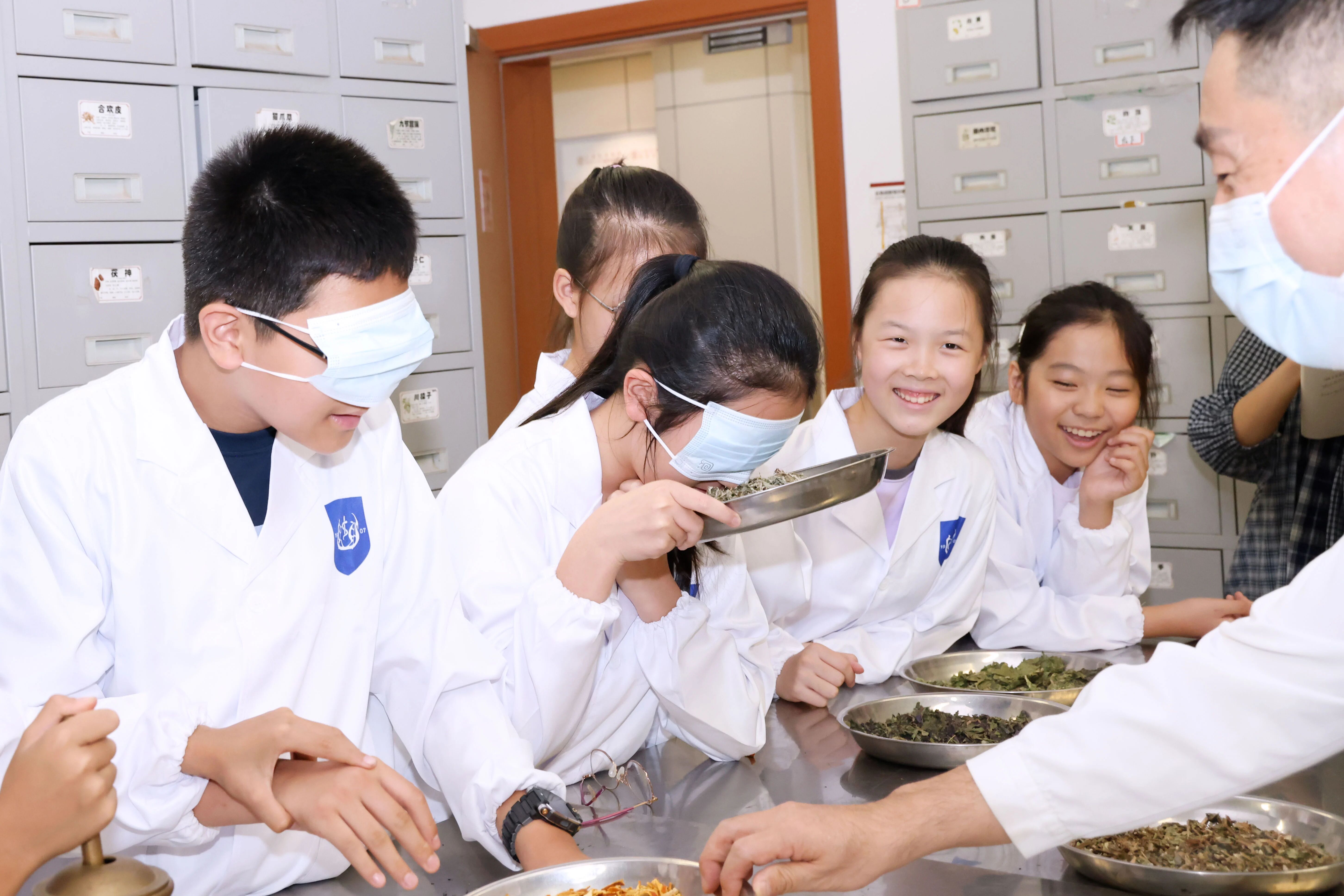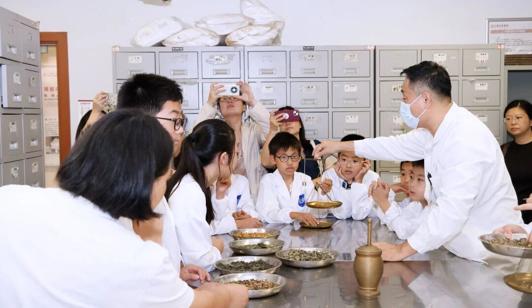隨后進行的“聞香識藥”環節更是將氣氛推向高潮。蒙著眼睛的孩子們鼻尖湊向藥材,僅憑氣味就能準確報出藥名,引得一旁的藥師和家長連連驚嘆。孩子們還親手體驗了中藥材的稱重、分裝,有模有樣地當起了“小藥師”,整場活動充滿了歡聲笑語。