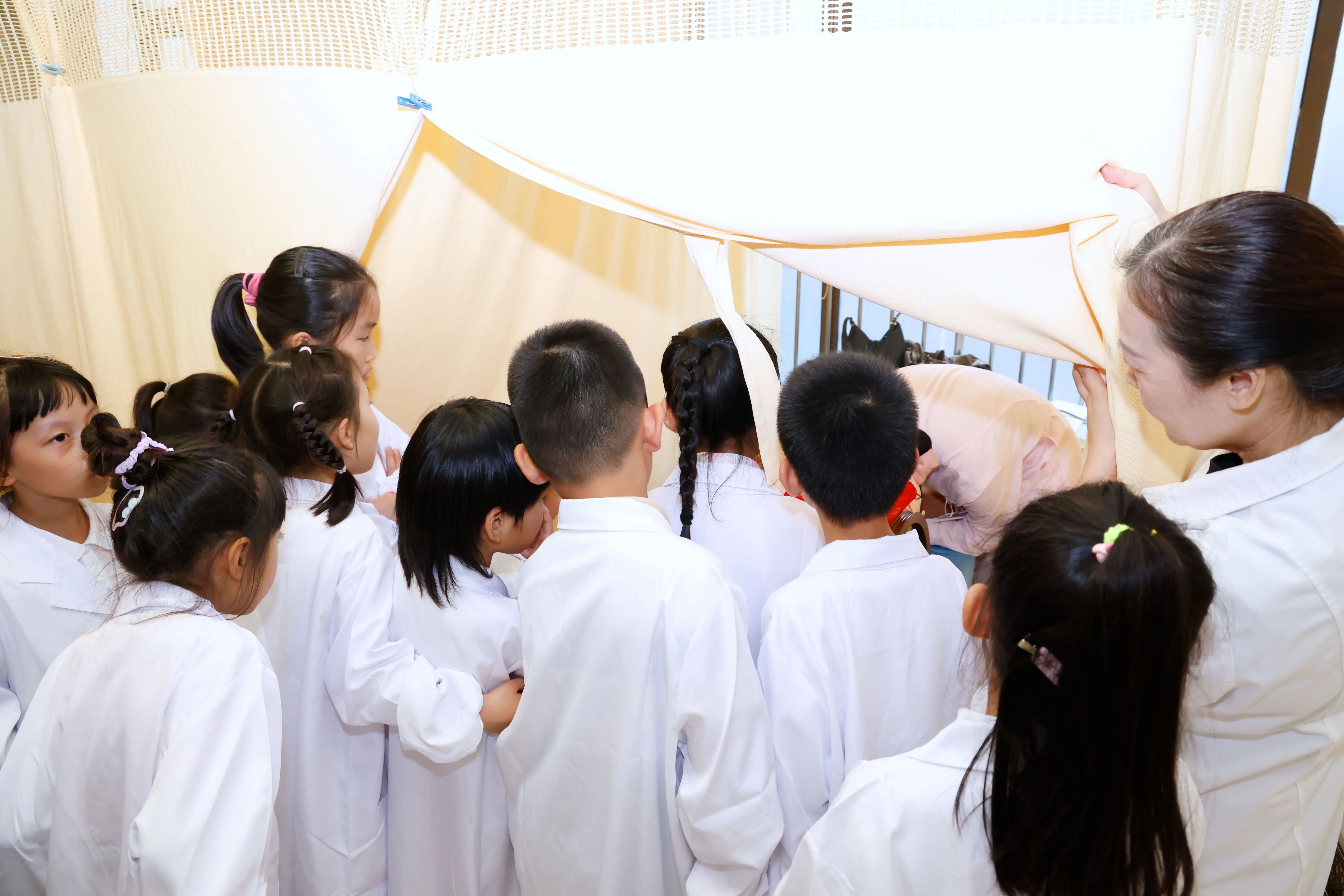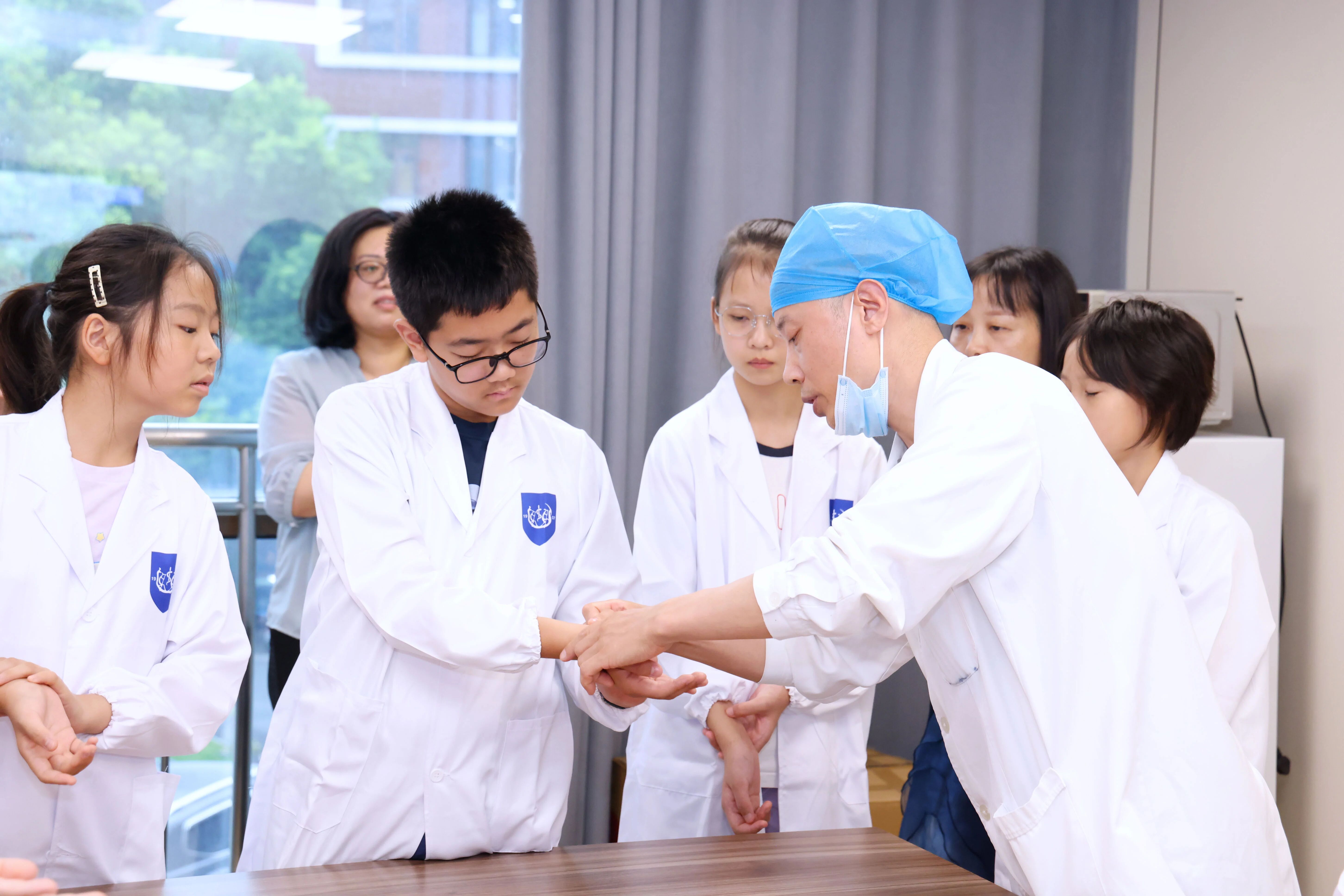 “神農嘗百草的故事太酷了!”“原來扁鵲爺爺是中醫的祖師!”在中醫藥啟蒙課堂上,孩子們跟著中醫科主任劉龍一起“穿越時空”,從源遠流長的中醫歷史故事,到中西醫治療方式的對比;從神秘莫測的經絡穴位,到各式各樣精巧的中醫器械……劉主任將深奧的醫學知識化作一個個生動故事,吸引大家專注聆聽。不少孩子還掏出本子,認真地做起了筆記。