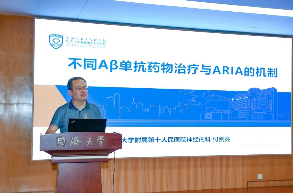 同濟大學附屬第十人民醫(yī)院神經(jīng)內(nèi)科主任付劍亮教授主講《不同Aβ單抗藥物治療與ARIA的機制》。他在報告中講到阿爾茨海默?。ˋD)的發(fā)病機制以及靶向治療路徑,指出β-淀粉樣蛋白(Aβ)沉積是阿爾茨海默病的關鍵病理核心。圍繞靶向Aβ清除的不同單抗藥物療法,他分析這些藥物引發(fā)ARIA(淀粉樣蛋白相關影像學異常)的具體分子和細胞機制,為臨床安全用藥提供指導。