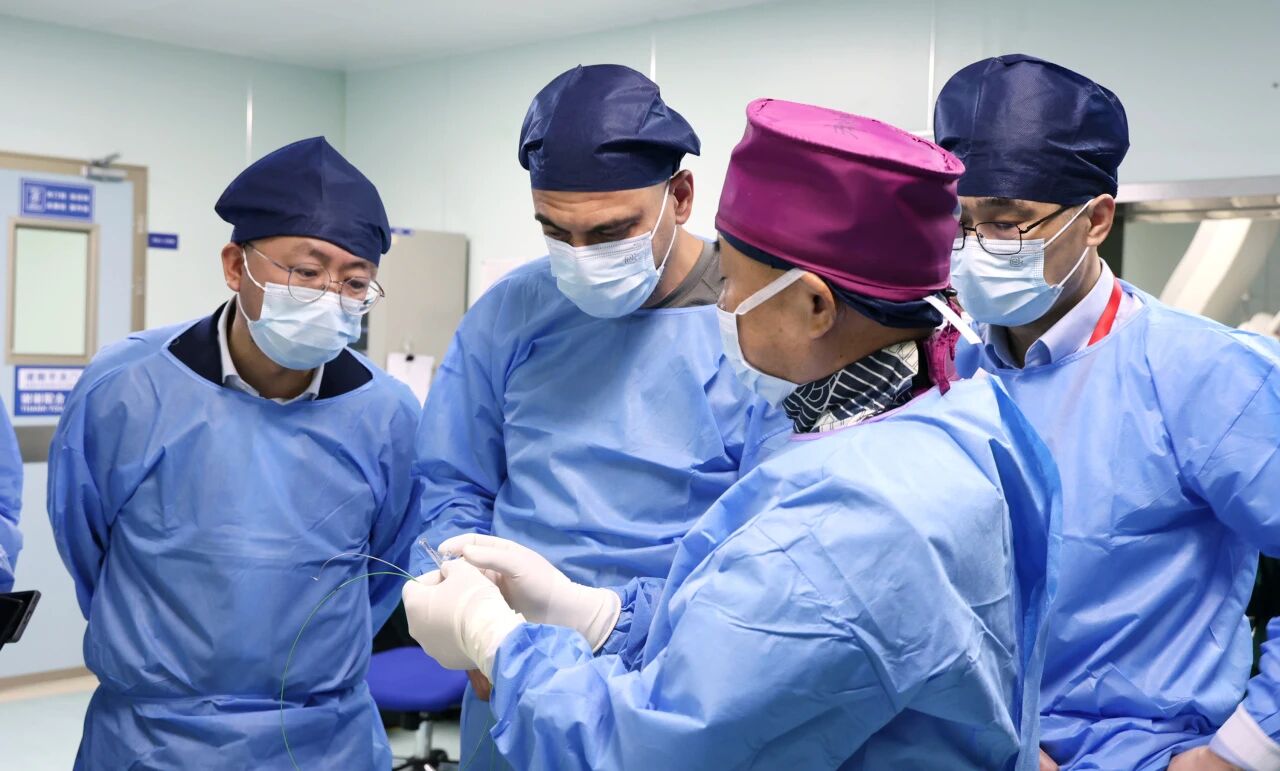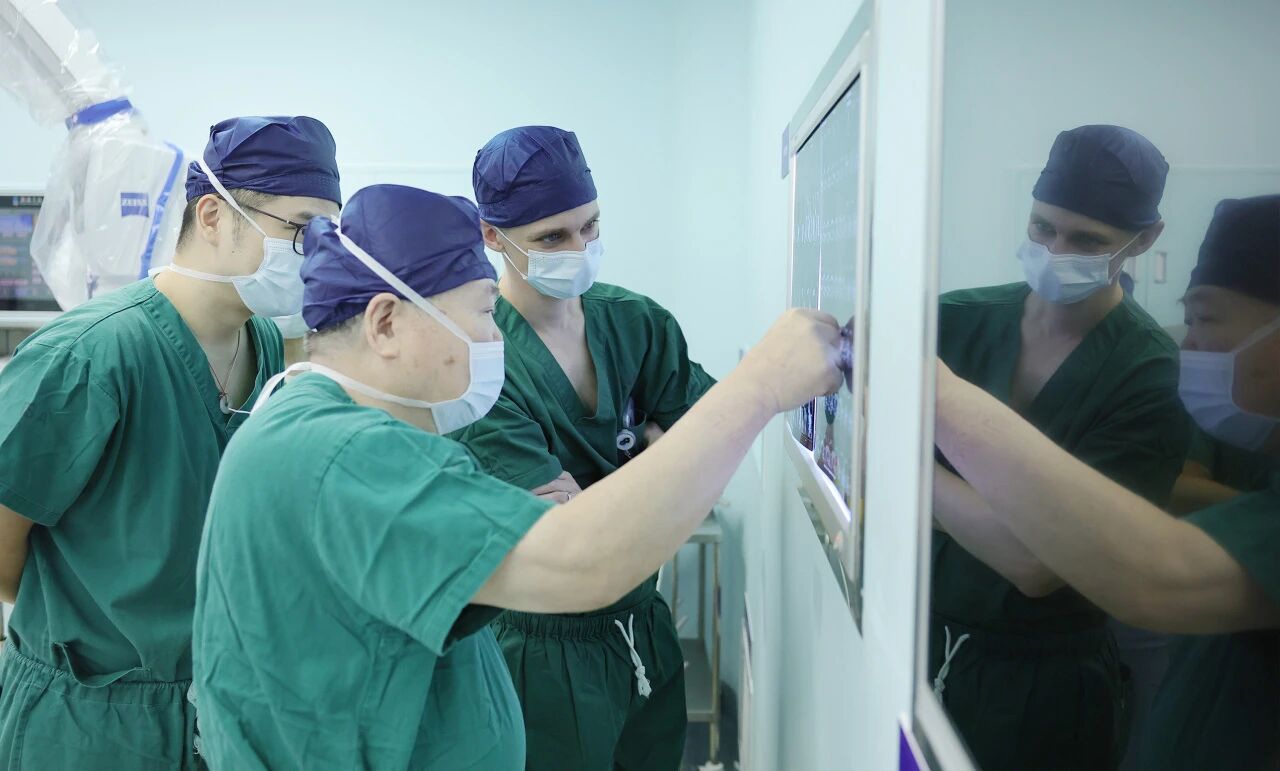 手術(shù)過(guò)程中,藍(lán)十字團(tuán)隊(duì)展現(xiàn)了流暢的操作流程、對(duì)器械特性的深刻理解以及應(yīng)對(duì)復(fù)雜血管條件的嫻熟技巧。Tareq Kass-Hout副教授對(duì)“零交換”技術(shù)帶來(lái)的操作簡(jiǎn)化、效率提升及潛在風(fēng)險(xiǎn)降低表示出濃厚興趣,并在術(shù)后與手術(shù)團(tuán)隊(duì)就技術(shù)細(xì)節(jié)、適應(yīng)證把握以及圍手術(shù)期管理要點(diǎn)進(jìn)行了深入交流。他對(duì)藍(lán)十字在腦血管介入領(lǐng)域展現(xiàn)出的技術(shù)水準(zhǔn)和創(chuàng)新能力給予了高度評(píng)價(jià),認(rèn)為這為雙方未來(lái)在該領(lǐng)域開(kāi)展更具體的技術(shù)合作與聯(lián)合研究提供了堅(jiān)實(shí)的實(shí)踐基礎(chǔ)。