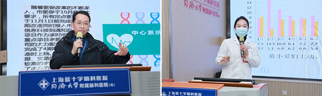 九樓、八樓重癥監(jiān)護病區(qū)主任、神經(jīng)內(nèi)科五位主任、功能神經(jīng)內(nèi)科主任、腫瘤科主任及急診科主任述職時,以多組同比數(shù)據(jù)展示醫(yī)療業(yè)績和質(zhì)量,量質(zhì)同升。談到新一年的工作計劃,10位主任不約而同展現(xiàn)了不斷探索、創(chuàng)新的決心,表示將繼續(xù)保持高昂的工作熱情,挖潛增能,為更多病患帶來福音。