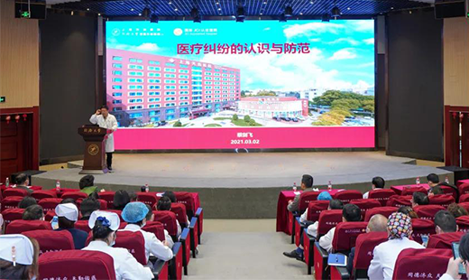 蔡劍飛院長作《醫療糾紛的認識與防范》專題講座。蔡院長首先從醫療質量、醫療糾紛的特點、醫療糾紛的分類和醫院糾紛的分類四大方面對醫療糾紛進行詳細解讀,通過典型的醫療糾紛案例,說明了醫療質量和安全的重要性。他強調,一切醫療糾紛的基礎是患者認為其生命權或健康權受到侵害,大家要理清醫療事故和過失的區別,提前主動介入,防范于未然,把糾紛隱患控制在萌芽狀態。