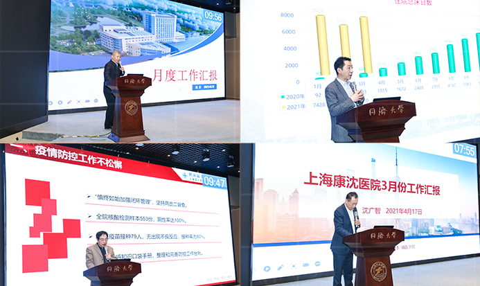 公司副總裁兼同濟大學附屬天佑醫(yī)院院長蔡劍飛、公司副總裁兼同濟大學附屬腦科醫(yī)院院長項耀鈞、上海藍生萬眾醫(yī)院院長韓建新、公司副總裁兼蘇州藍十字腦科醫(yī)院院長戴震、上海藍生宏德醫(yī)院院長周宏宇、慈溪藍十字腦科醫(yī)院院長杭鶴云、上海康沈醫(yī)院院長沈廣智分別就3月份大項任務、業(yè)務運營、工程建設和常態(tài)化疫情防控工作作匯報,并對4月份重點任務和目標清單作簡要報告。