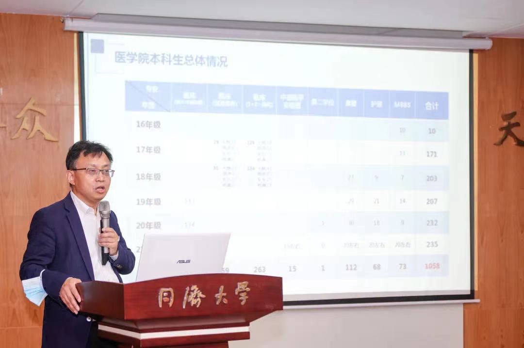 蔡劍飛院長(zhǎng)首先從醫(yī)院歷史、改革成效、持續(xù)探索三個(gè)方面,回顧了天佑與同濟(jì)的歷史淵源,展示了醫(yī)院在探索醫(yī)教研協(xié)同發(fā)展、核心特色打造、人才引進(jìn)培養(yǎng)以及創(chuàng)建成為同濟(jì)大學(xué)附屬醫(yī)院過程中所作的努力和取得的成效。他表示,醫(yī)院是同濟(jì)大學(xué)攜手上海藍(lán)生腦科醫(yī)院投資股份有限公司按照三級(jí)醫(yī)院標(biāo)準(zhǔn)創(chuàng)辦的混合制綜合性醫(yī)院。從2018年啟動(dòng)改革以來,醫(yī)院進(jìn)入快速發(fā)展階段。“155”學(xué)科建設(shè)計(jì)劃扎實(shí)推進(jìn),學(xué)科人才建設(shè)取得突破,合作共建取得進(jìn)展,優(yōu)質(zhì)服務(wù)和滿意工程持續(xù)深化,黨建文化和社會(huì)公益大放異彩,醫(yī)院業(yè)務(wù)快速發(fā)展并有后勁。他強(qiáng)調(diào),醫(yī)院身在同濟(jì)(滬西校區(qū)),心在同濟(jì)。醫(yī)院能夠取得長(zhǎng)足發(fā)展,離不開同濟(jì)大學(xué)各級(jí)領(lǐng)導(dǎo)的關(guān)懷與支持。未來,醫(yī)院將緊跟同濟(jì)大學(xué)醫(yī)學(xué)院發(fā)展步伐,以同濟(jì)醫(yī)科“十四五”發(fā)展規(guī)劃為指引,帶領(lǐng)全院上下團(tuán)結(jié)同心,共同推動(dòng)醫(yī)院臨床醫(yī)療、教學(xué)、科研、學(xué)科和人才隊(duì)伍建設(shè)等各項(xiàng)工作再上新臺(tái)階,為同濟(jì)醫(yī)教研發(fā)展作出應(yīng)有的貢獻(xiàn)。