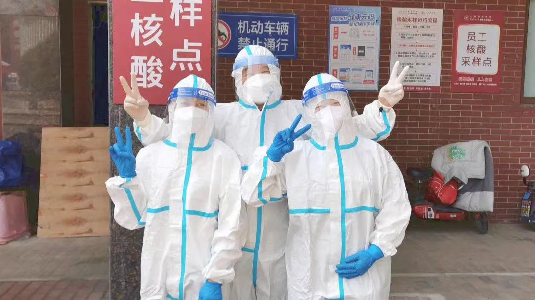 “大家除了為集中前來的居民采樣,還要為特殊的人群上門采樣。“在普中心醫院采樣點的劉宛宛說,“有些孕婦和老年人不便下樓,隊員們就爬樓梯到家中進行采樣,穿著防護服爬上6樓,稍跑得快一點,人都要窒息了,但是當大家的工作得到居民的贊許,感覺累一點也值了。”