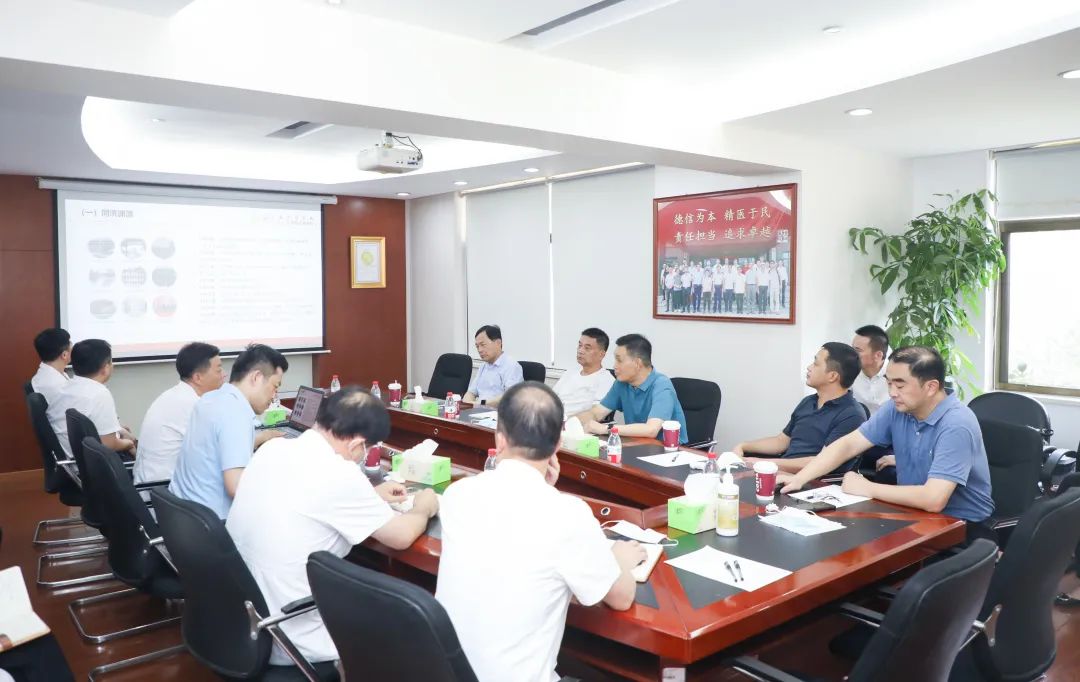 參觀結(jié)束后,在醫(yī)院行政樓舉行了座談會(huì)。卓立強(qiáng)董事長(zhǎng)向劉永好董事長(zhǎng)一行介紹醫(yī)院領(lǐng)導(dǎo)班子,蔡劍飛院長(zhǎng)代表醫(yī)院作工作匯報(bào)。