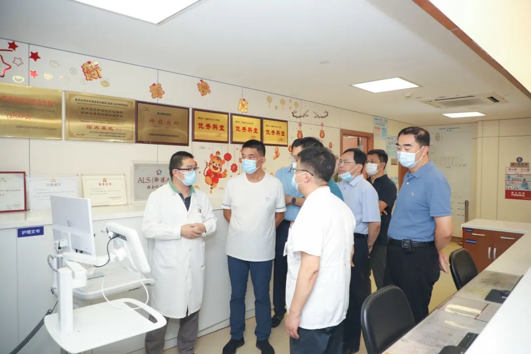 劉永好董事長(zhǎng)一行還參觀了康復(fù)大廳。陶泉主任引導(dǎo)大家參觀了大廳功能布局和設(shè)備設(shè)施,介紹了科室日常管理、服務(wù)功能、項(xiàng)目開展等情況。劉永好董事長(zhǎng)一行還參觀了神經(jīng)重癥監(jiān)護(hù)室、口腔科及核酸采樣亭。