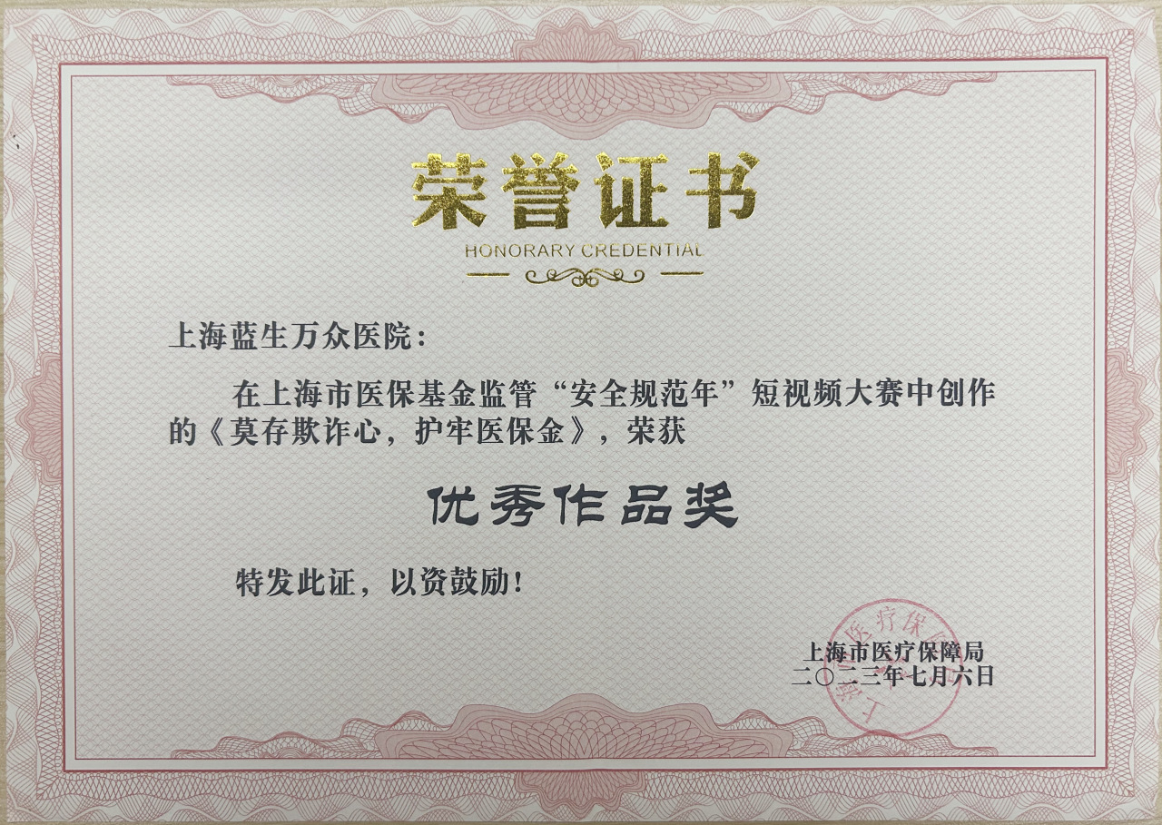 4月18日徐匯區(qū)醫(yī)療保障基金監(jiān)管集中宣傳月主題日活動還為2023年上海市醫(yī)保基金監(jiān)管“安全規(guī)范年”短視頻大賽的獲獎作品進行展演與頒獎。上海藍生萬眾醫(yī)院報送的作品《莫存欺詐心,護牢醫(yī)保金》獲得優(yōu)秀作品獎。