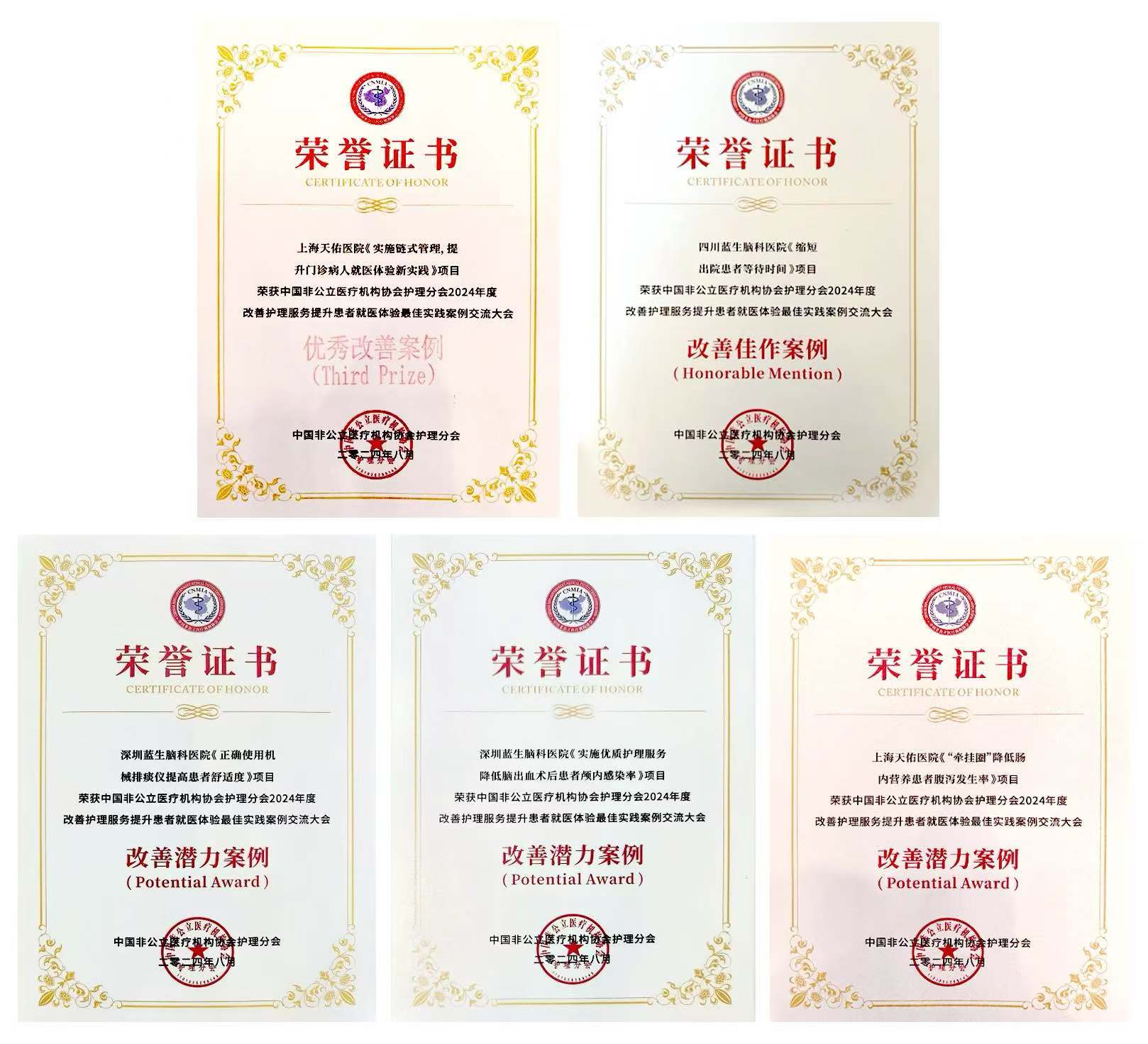 公司旗下上海天佑醫(yī)院報送的《實(shí)施鏈?zhǔn)焦芾恚嵘T診病人就醫(yī)體驗(yàn)新實(shí)踐》獲評優(yōu)秀改善案例,四川藍(lán)生腦科醫(yī)院報送的《縮短患者出院等待時間》獲評改善佳作案例,上海天佑醫(yī)院報送的《降低腸內(nèi)營養(yǎng)患者腹瀉發(fā)生率》和深圳藍(lán)生腦科醫(yī)院報送《實(shí)施優(yōu)質(zhì)護(hù)理服務(wù)降低腦出血術(shù)后患者顱內(nèi)感染率》《正確使用機(jī)械排痰儀提高患者舒適度》獲評改善潛力案例獎。