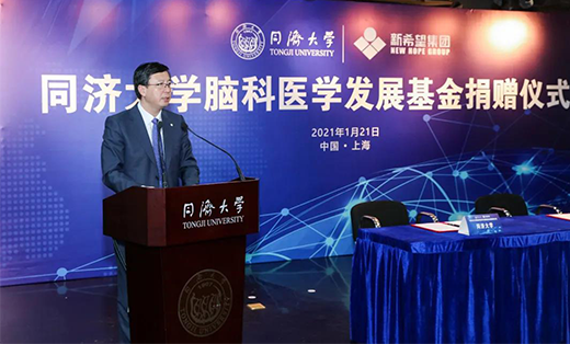 1月21日,新希望集團向同濟大學教育發展基金會捐贈人民幣1億元,專項支持同濟大學中德腦科學臨床研究和轉化醫學中心建設。