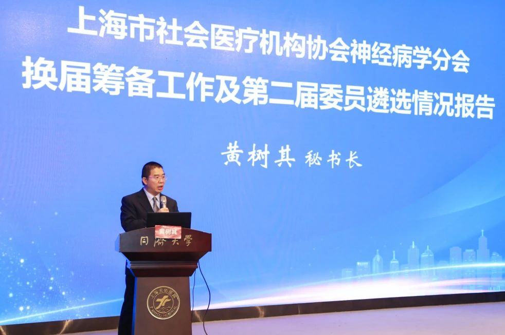 第一屆神經病學分會副主委兼秘書長、天佑醫院神經內科主任黃樹其作神經病學分會換屆籌備工作及第二屆委員推選情況報告,他從神經病學分會換屆的背景、換屆籌備等方面進行了詳細介紹。