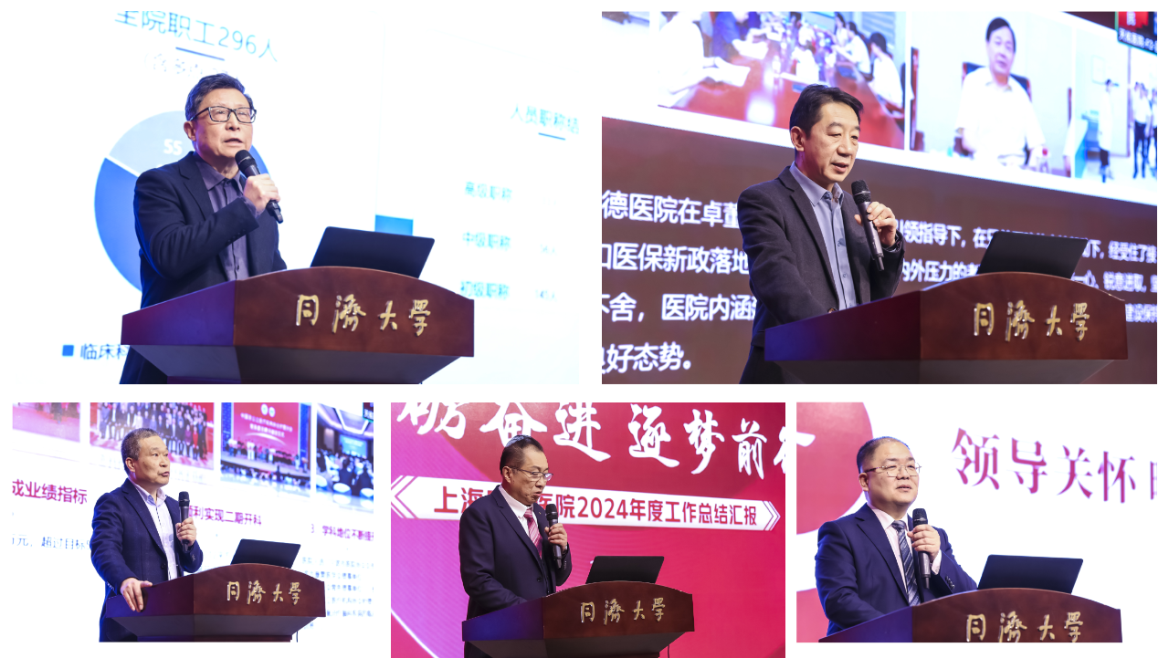 上午8時28分,大會在高唱國歌中拉開帷幕。10家醫(yī)院和4家子公司主要領(lǐng)導(dǎo)依次上臺,總結(jié)匯報2024年主要工作,查找差距和不足,分析形勢與挑戰(zhàn),明確2025年工作目標(biāo)和主要舉措。