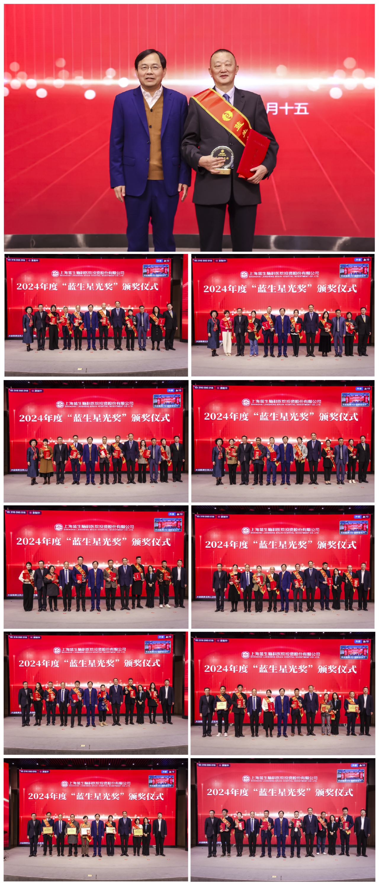 陳樹林副總裁宣讀第七屆藍(lán)生星光獎表彰通報,授予孫紅斌教授杰出星光獎,卓立強(qiáng)董事長為孫宏斌教授頒獎;授予67名同志星光獎,授予11個科室團(tuán)隊星光獎,與會公司領(lǐng)導(dǎo)為他們頒獎。
