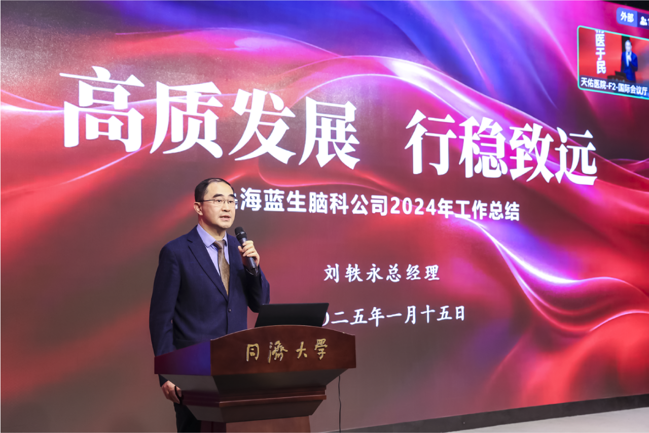 1月15日,藍(lán)生腦科在同濟(jì)大學(xué)附屬天佑醫(yī)院國際會議廳召開2024年度年終工作總結(jié)暨表彰大會,蘇州、深圳、四川、慈溪等醫(yī)院設(shè)分會場。大會的主題是“守正創(chuàng)新乘大勢 高質(zhì)發(fā)展譜新篇”,總結(jié)交流工作,分析困難挑戰(zhàn),明確目標(biāo)任務(wù),部署近期工作,表彰先進(jìn)典型,動員激勵全體藍(lán)生人為公司醫(yī)院高質(zhì)發(fā)展奮發(fā)進(jìn)取。