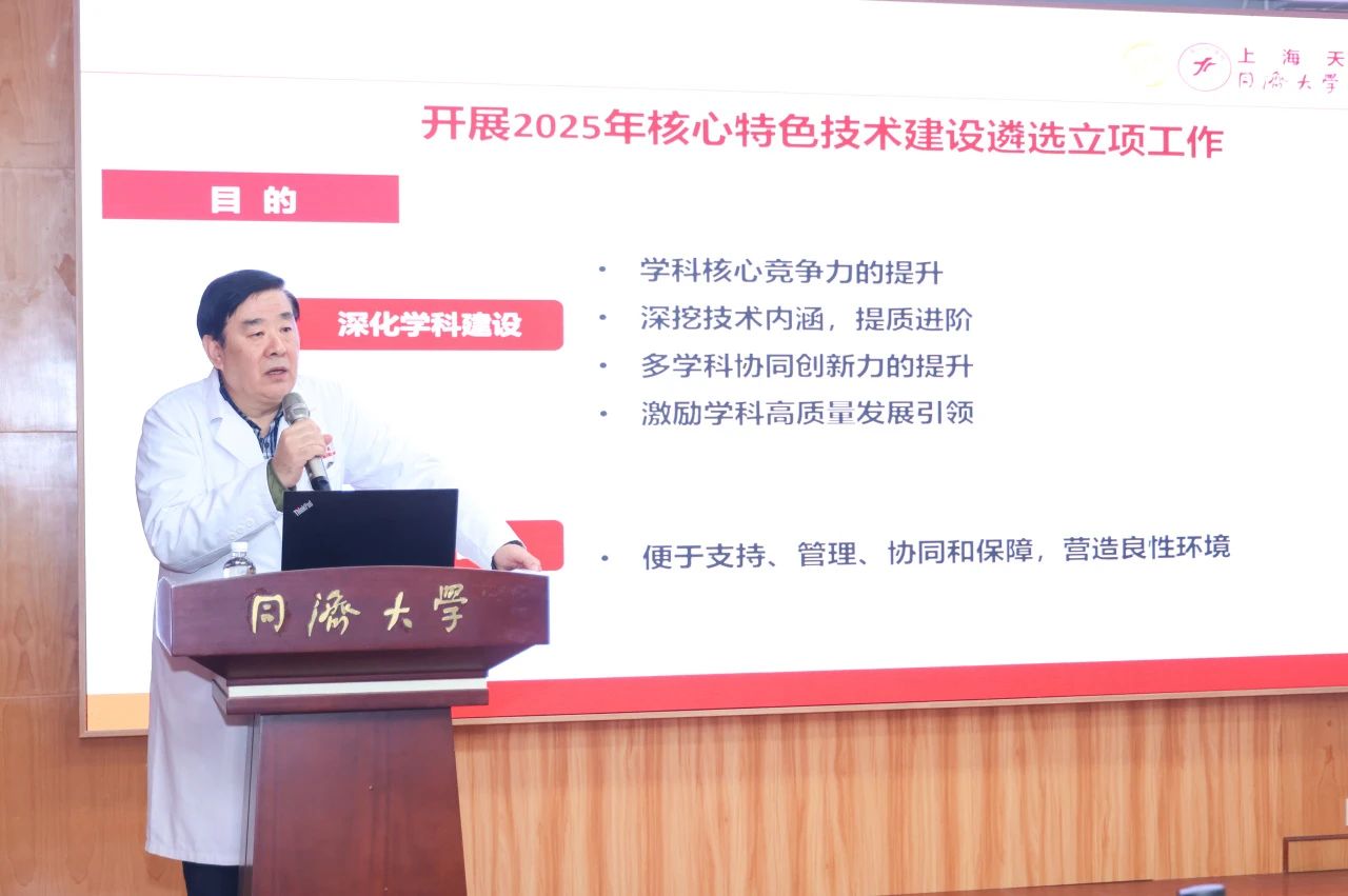 “核心特色技術是衡量醫院醫療技術水平和專業特色的重要標準,是提升醫院核心競爭力的根本途徑,也是實現醫院高質量發展的關鍵要素。”王強執行院長回顧了醫院學科建設取得的階段性成果,并詳細介紹了2025年核心特色技術建設遴選立項工作的目的和特點。