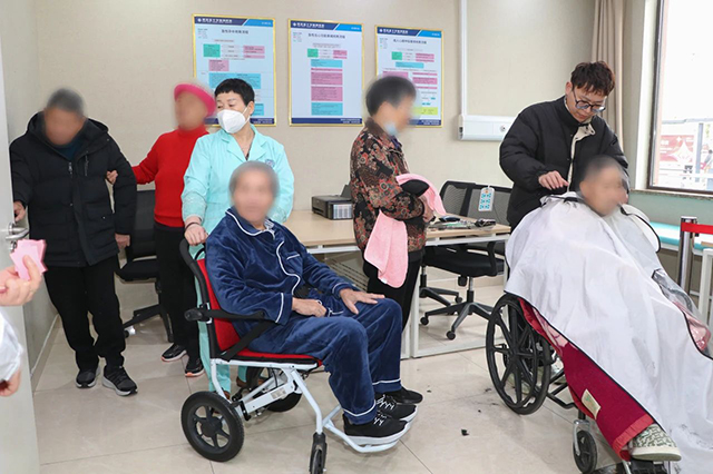 慈溪藍(lán)十字腦科醫(yī)院聯(lián)合地球村美發(fā)志愿團(tuán)隊(duì)來(lái)到醫(yī)院,開(kāi)展“愛(ài)心義剪”活動(dòng)。志愿者們分成兩組,一組在臨時(shí)診室提供免費(fèi)理發(fā)服務(wù),一組深入重癥康復(fù)病房開(kāi)展床旁服務(wù)。短短一個(gè)上午,志愿者為 32 位人員完成理發(fā)。