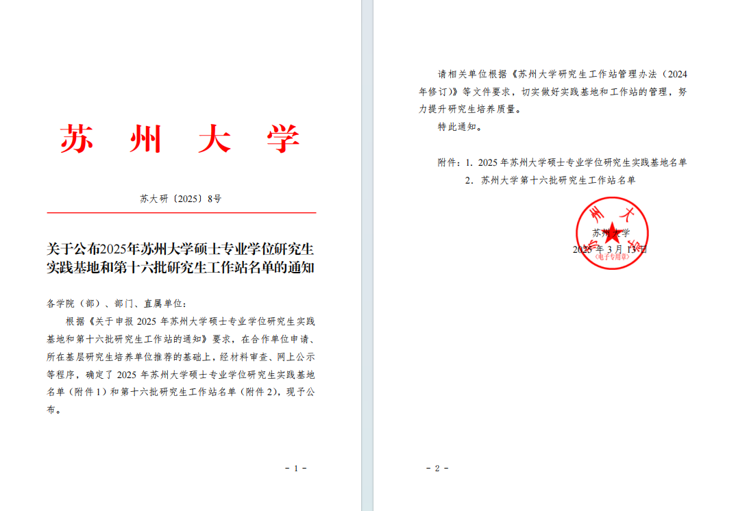 日前,蘇州大學(xué)發(fā)布了2025年第十六批研究生工作站名單(蘇大研函〔2025〕8 號(hào)),蘇州藍(lán)十字腦科醫(yī)院獲批與蘇州醫(yī)學(xué)院神經(jīng)科學(xué)研究所共建研究生工作站。