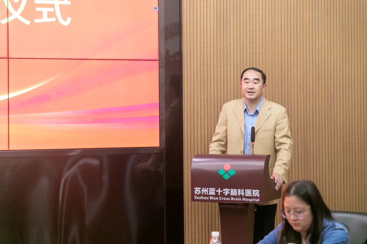 醫(yī)院徐必生院長(zhǎng)首先致歡迎辭,對(duì)各位專家領(lǐng)導(dǎo)的到來(lái)表示歡迎。徐院長(zhǎng)從不同維度強(qiáng)調(diào)了工作站的重要意義,充分肯定蘇州大學(xué)與蘇州藍(lán)十字腦科醫(yī)院深度合作取得的豐碩成果,表示醫(yī)院將珍惜校企協(xié)作所帶來(lái)的發(fā)展機(jī)遇,希望雙方能繼續(xù)發(fā)揮各自優(yōu)勢(shì),在人才培養(yǎng)、科技創(chuàng)新、社會(huì)服務(wù)等方面進(jìn)行深入合作,力爭(zhēng)創(chuàng)建省級(jí)研究生工作站。