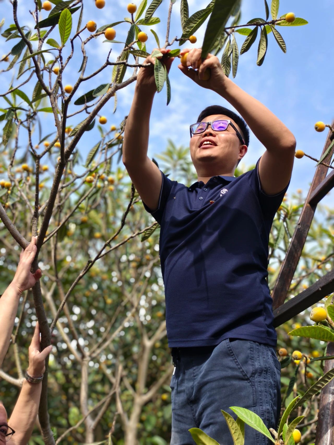 穿行在蔥郁的果林中,枝頭墜滿金燦燦的枇杷,宛如璀璨寶石,于翠綠葉片間閃爍著迷人光澤。大家紛紛挽起衣袖,躬身投入勞作,在親身體驗(yàn)中感受耕耘的艱辛,分享豐收喜悅,重溫艱苦奮斗傳統(tǒng)。