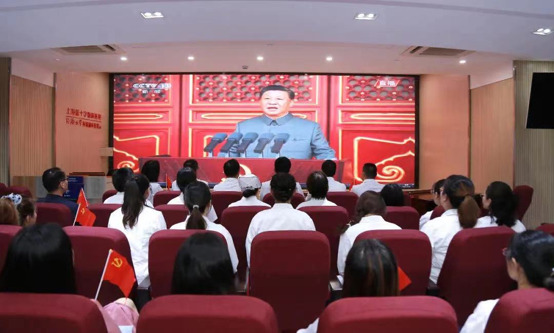 7月1日上午8時,慶祝中國共產(chǎn)黨成立100周大會在北京天安門廣場隆重舉行。中共中央總書記、國家主席、中央軍委主席習(xí)近平發(fā)表重要講話。上海藍十字腦科醫(yī)院黨支部書記兼總經(jīng)理朱敏等院領(lǐng)導(dǎo)帶頭,黨支部成員及部分醫(yī)護代表在十樓多功能會議廳集中觀看大會實況直播,共同慶祝中國共產(chǎn)黨成立100周年。